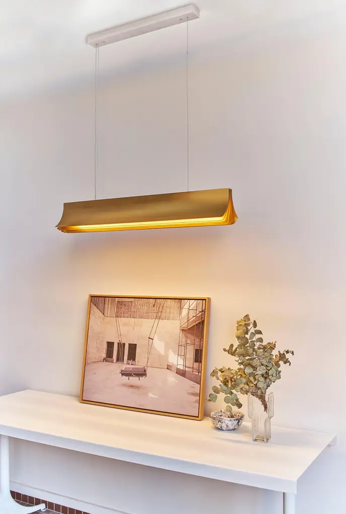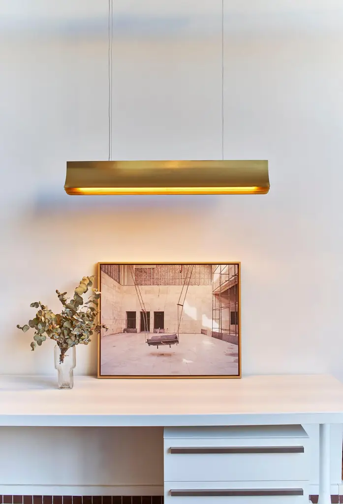 Small respiro pendant lamp by Philippe NigroDimensions: D 90 x W 16 x H 15 cmMaterials: AluminumAvailable in 2 sizes: 90 cm, 120 cm.All our lamps can be wired according to each country. If sold to the USA it will be wired for the USA for instance.Philippe Nigro, a French designer, lives between Paris and Milan. After studying Industrial Design and a degree in applied arts at the Boulle school in Paris, he started with Michele De Lucchi and then set up his studio to bring his ideas to life: his objects, his architectural projects and scenography of space.« The designer’s work is to think globally in order to create wider concepts, linked to objects obviously, but as well to space, to architecture »In 2014 he was awarded Designer of the Year for the French furniture fair Maison & Objet. He also develop exhibition design project for the 7th edition of Milano’s Triennale Design Museum: “Italian Design beyond the Crisis”. In 2015 he creates the scenography for Lexus, Japanese cars company, for the Milano Furniture Fair for which in 2017 realized the new booth for worldwilde motorshows. In 2016-17 he realized the installation Ultralin, Paris Place des Vosges, and Sololino in Milan for CELC.