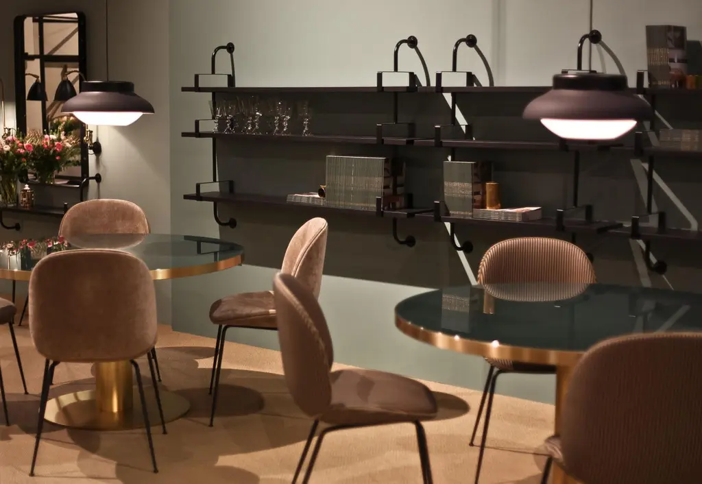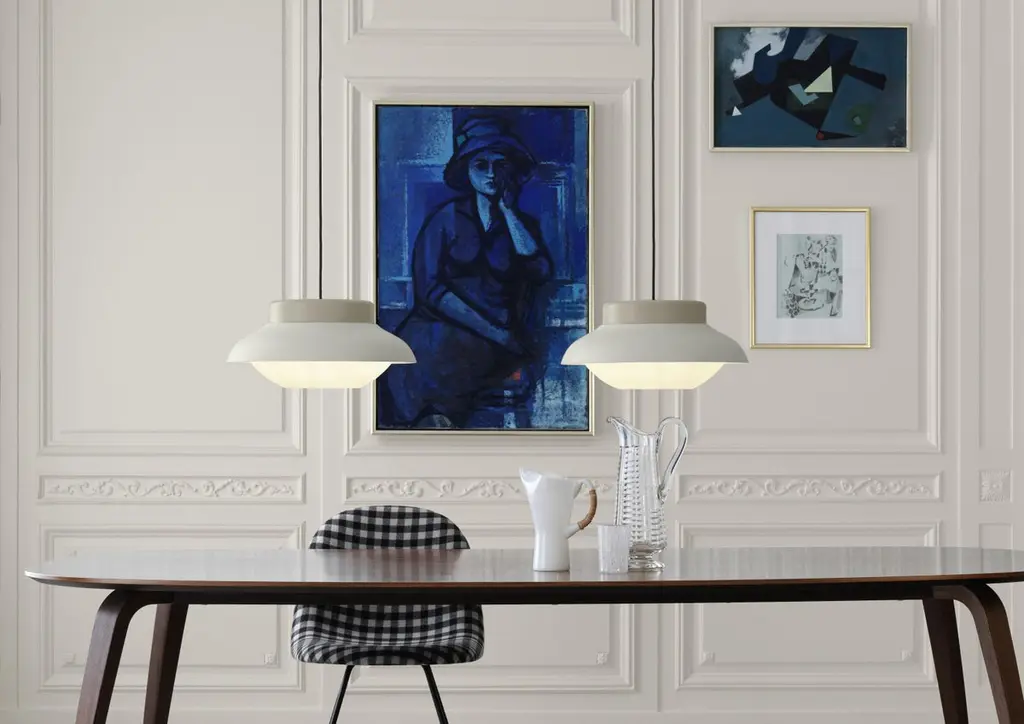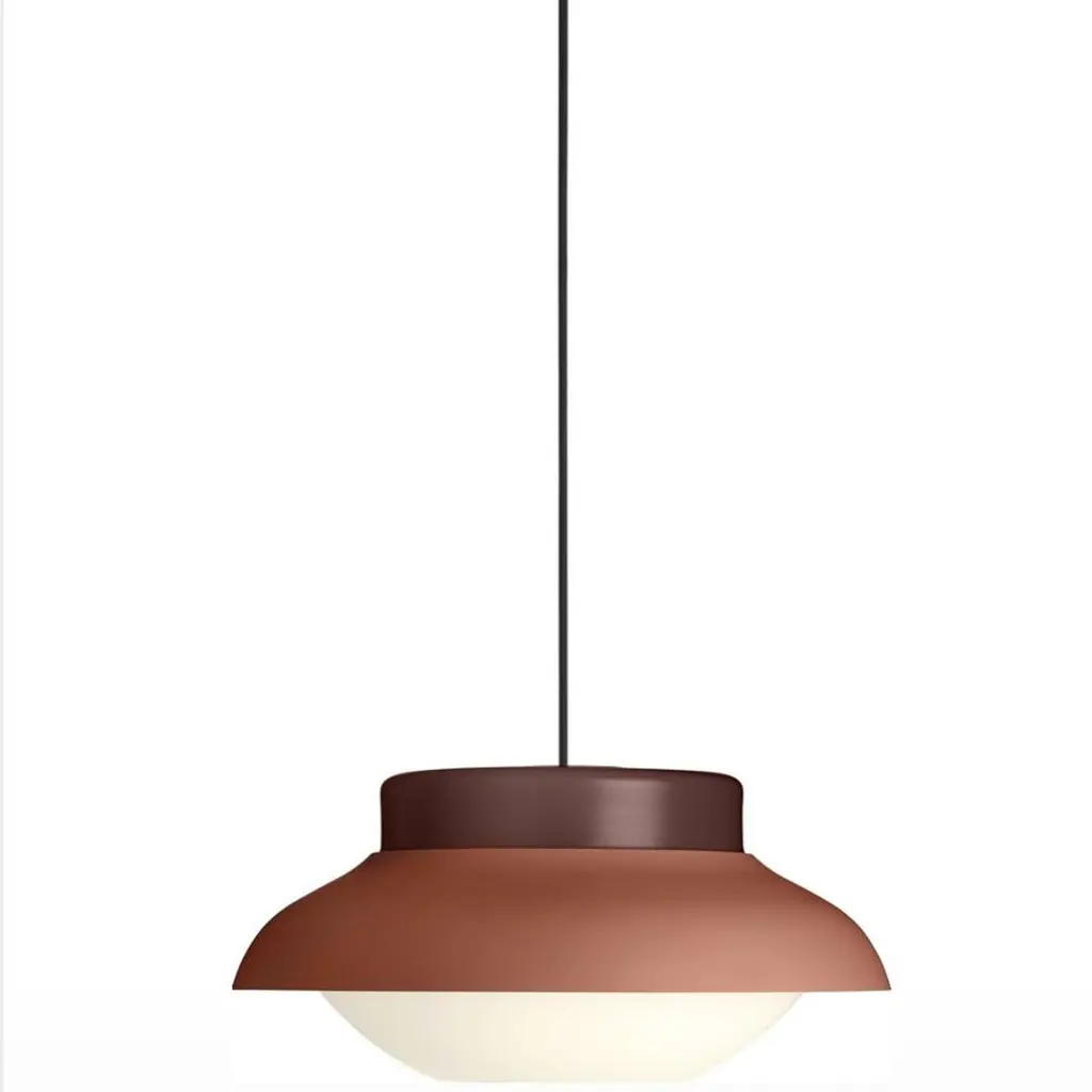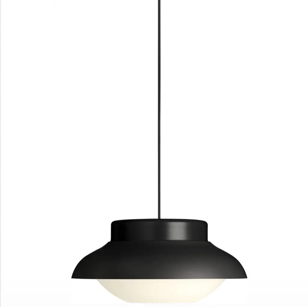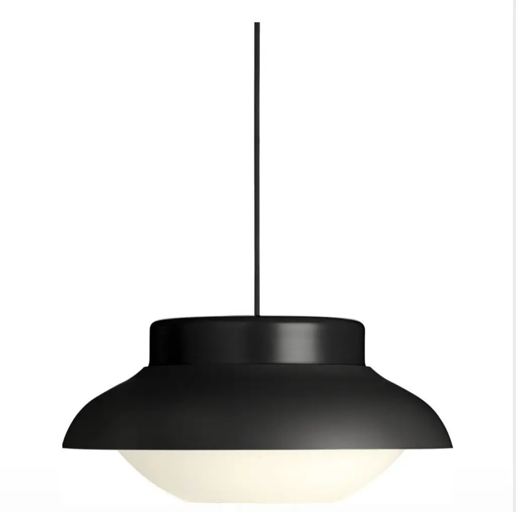 Small Sebastian Herkner collar pendant in stone grey for Gubi. Created by German designer Sebastian Herkner, the collar pendant is executed in steel, mouth-blown glass, and powder-coated aluminum. Each pendant is crafted using traditional techniques which gives every lamp its unique and iconic look. Its strong character is achieved by the combination of the soft rounded glass, with a matte surface, and a steel "collar", used as a reflector, that together perfectly diffuses a warm light that sets just the right lighting atmosphere.The lamp looks great as a single feature alone over a table, but by mixing colors and large and small Collar Pendants, it gives possibilities for personalized and playful installations.Price is per item. Also available in a larger size and in a variety of colors: Taupe soft matt, terracotta light matt, soft fog matt, carbone semi matt.In-stock lead-time 2-3 weeks. Out of stock lead time can take several weeks more. Availability can change at any time. Made to order. All sales are final. Bulb requirements: Socket: E26 base; Bulb type: G16.5. Recommended wattage: 40 W - Max wattage: 40 W.