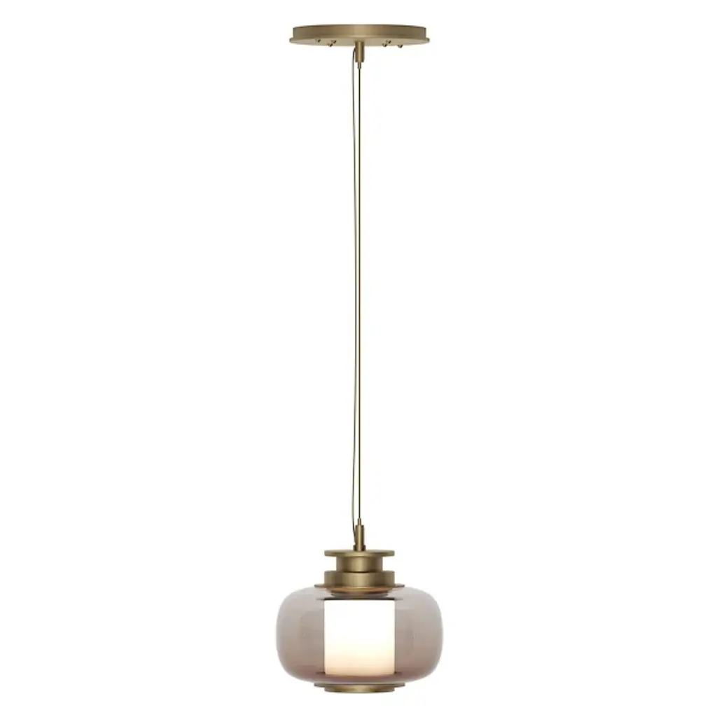 Smoked glass lizak drop pendant by Bert Frank.Dimensions: D 78 x W 27 x H 78 cmMaterials: brass and glass.Available finishes: brass, opal and blue.All our lamps can be wired according to each country. If sold to the USA it will be wired for the USA for instance.When Adam Yeats and Robbie Llewellyn founded Bert Frank in 2013 it was a meeting of minds and the start of a collaborative creative partnership with engineering at the core.Both men share a love of design and deep respect for the heritage of British engineering. Both wanted to create high-end products that would stand the test of time and fly in the face of throwaway consumerism. The partnership has resulted in award-winning lighting and accessories that fuse the integrity of the small-scale workshop with timeless aesthetics reimagined for today.The two men work closely together from concept to end product. Robbie’s imagination and occasional flights of fancy are informed by Adam’s understanding of engineering principles and fabrication techniques. Equally, Adam's designs are often the starting point for a collection. In that sense Bert Frank is a true creative collaboration. As a result, every designed is honed to perfection, every detail carefully considered.