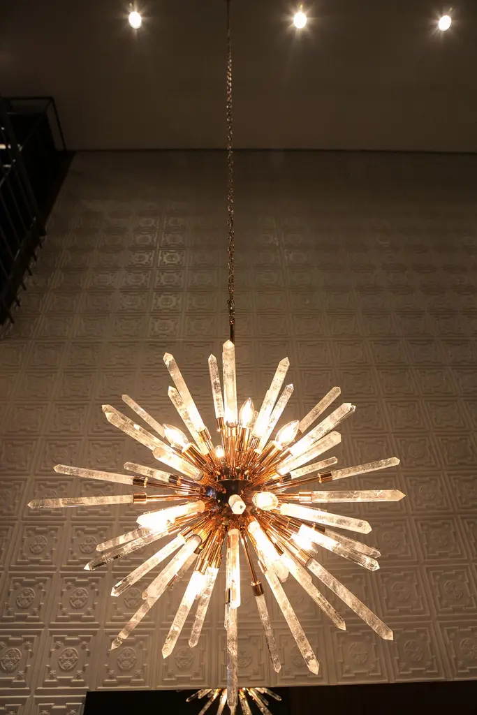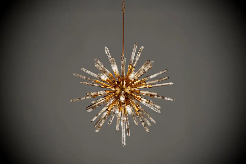 Smoked quartz pendant lamp by AverDimensions: D 84 x W 84 x H 100 cm.Lighting: Eighteen E14Finish: Silver leaf, old silver leaf, gold leaf, old gold leaf, copper leaf, rusty, pink golf, brass .Rock crystal: White quartz, smoked quartz.
