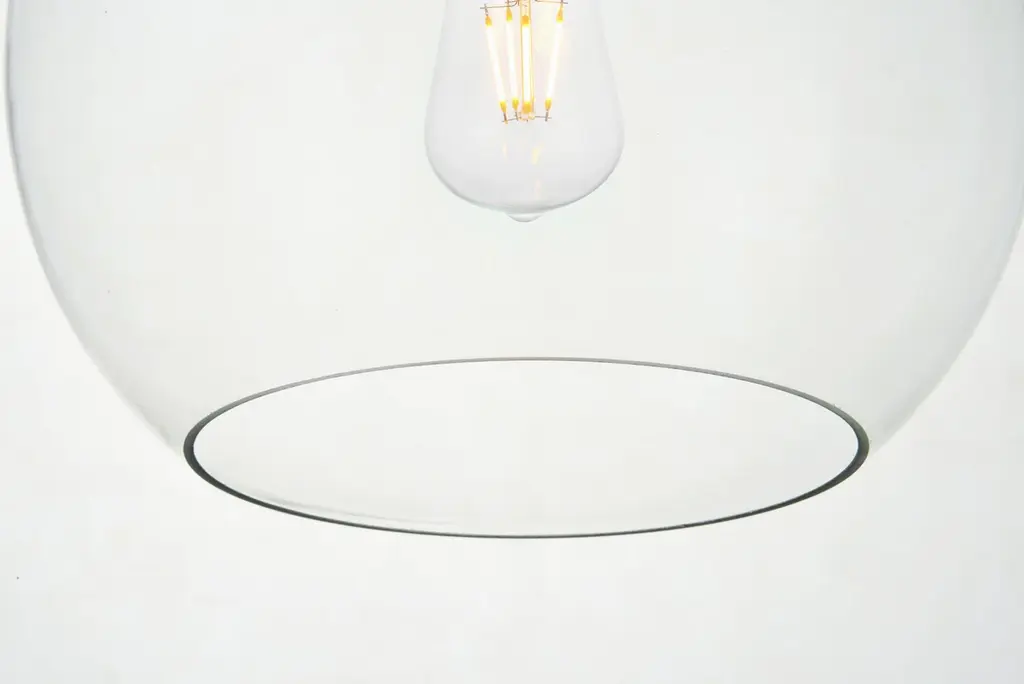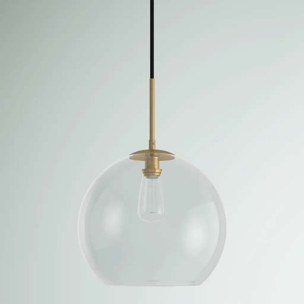 About This Product Bring a boost of brightness and a touch of contemporary style to any arrangement with this 1-light globe pendant. Crafted with a circular metal canopy, this fixture features a spherical glass shade with a smaller opening at the bottom that lets you switch out compatible 40W medium-base bulbs (not included) with ease. An adjustable hanging cord lets you tweak this design’s height to suit your space. Plus, the manufacturer backs this product with a one-year year warranty. Features Wire Included: Yes It is ETL-rated US Shipping Cost: $16.00 Fixture Material: Iron and Glass Shipment type: Small Parcel Hanging Device: Cord