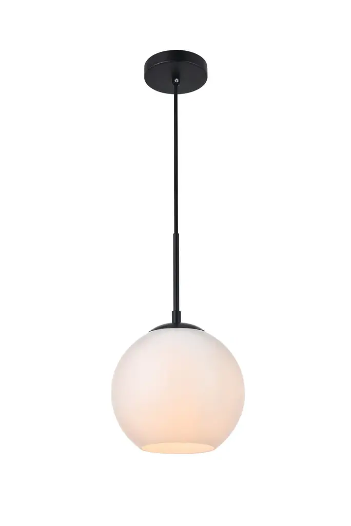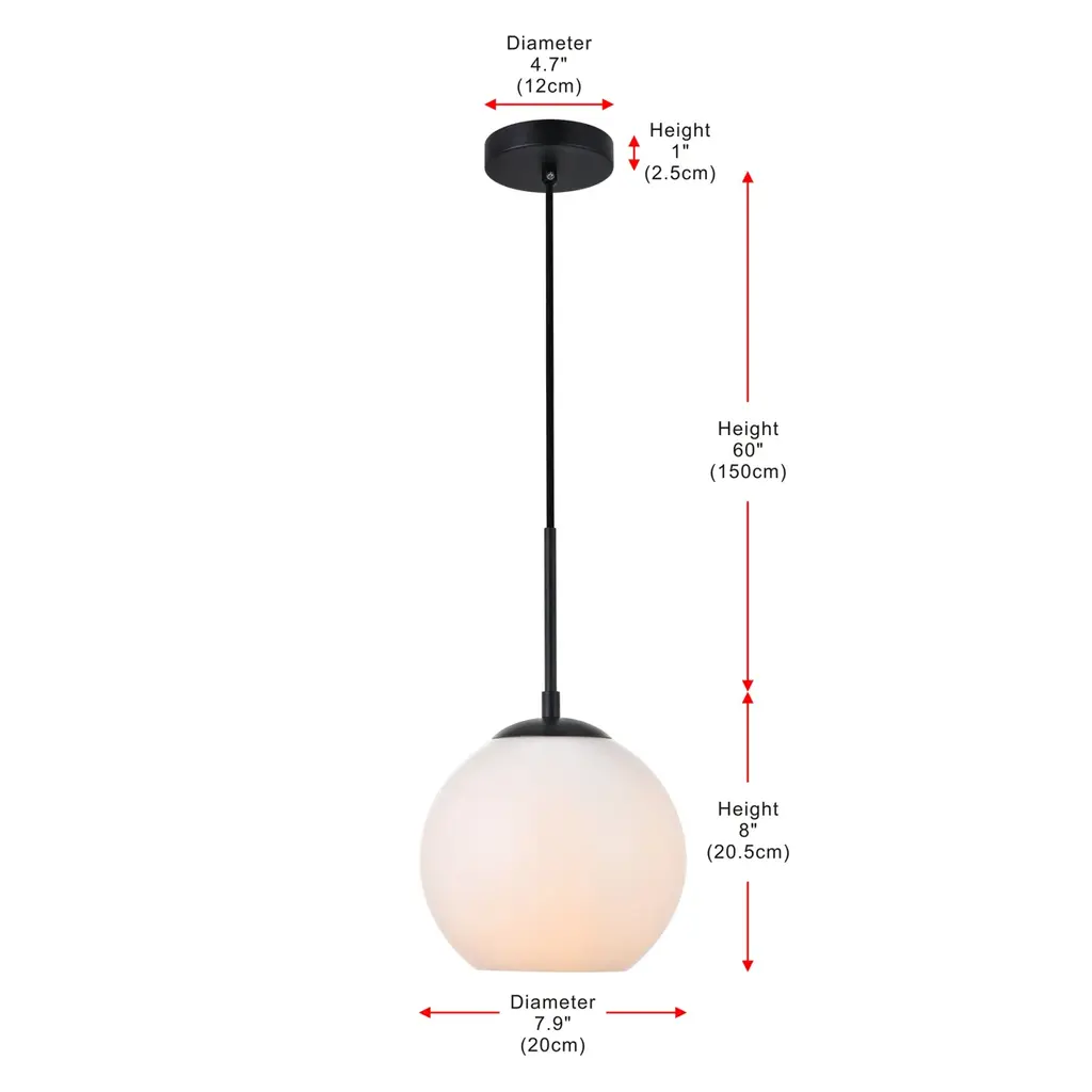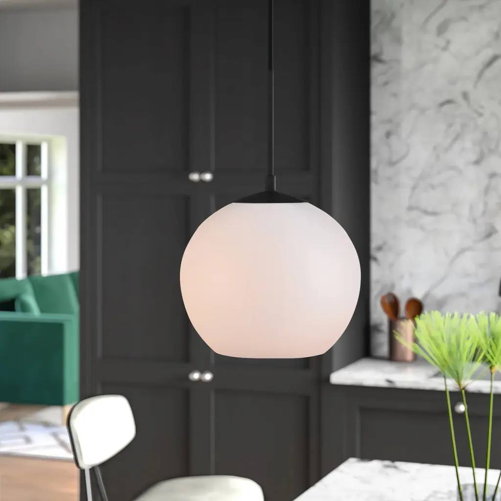 About This Product Bring a boost of brightness and a touch of contemporary style to any arrangement with this 1-light globe pendant. Crafted with a circular metal canopy, this fixture features a spherical glass shade with a smaller opening at the bottom that lets you switch out compatible 40W medium-base bulbs (not included) with ease. An adjustable hanging cord lets you tweak this design’s height to suit your space. Plus, the manufacturer backs this product with a one-year year warranty. Features Wire Included: Yes It is ETL-rated US Shipping Cost: $16.00 Fixture Material: Iron and Glass Shipment type: Small Parcel Hanging Device: Cord