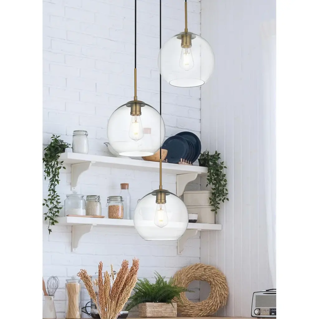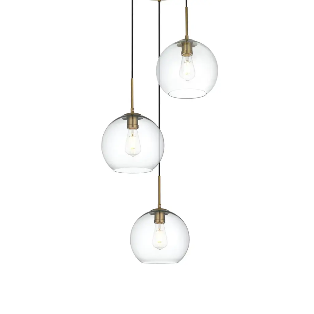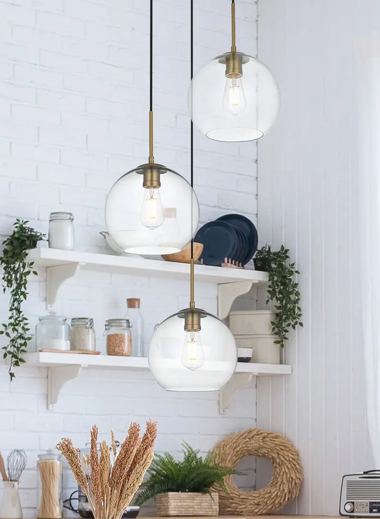 About This Product Bring a boost of brightness and a touch of contemporary style to any arrangement with this 3-light cluster pendant. Crafted with a circular metal canopy, this fixture features three slender cords. Spherical glass shades are suspended below, while compatible three total 40W medium-base bulbs (not included) sit within to cast light downward. The manufacturer backs this pendant light with a one-year warranty. Features Assembly Required: No ETL: Yes Dimmable: Yes