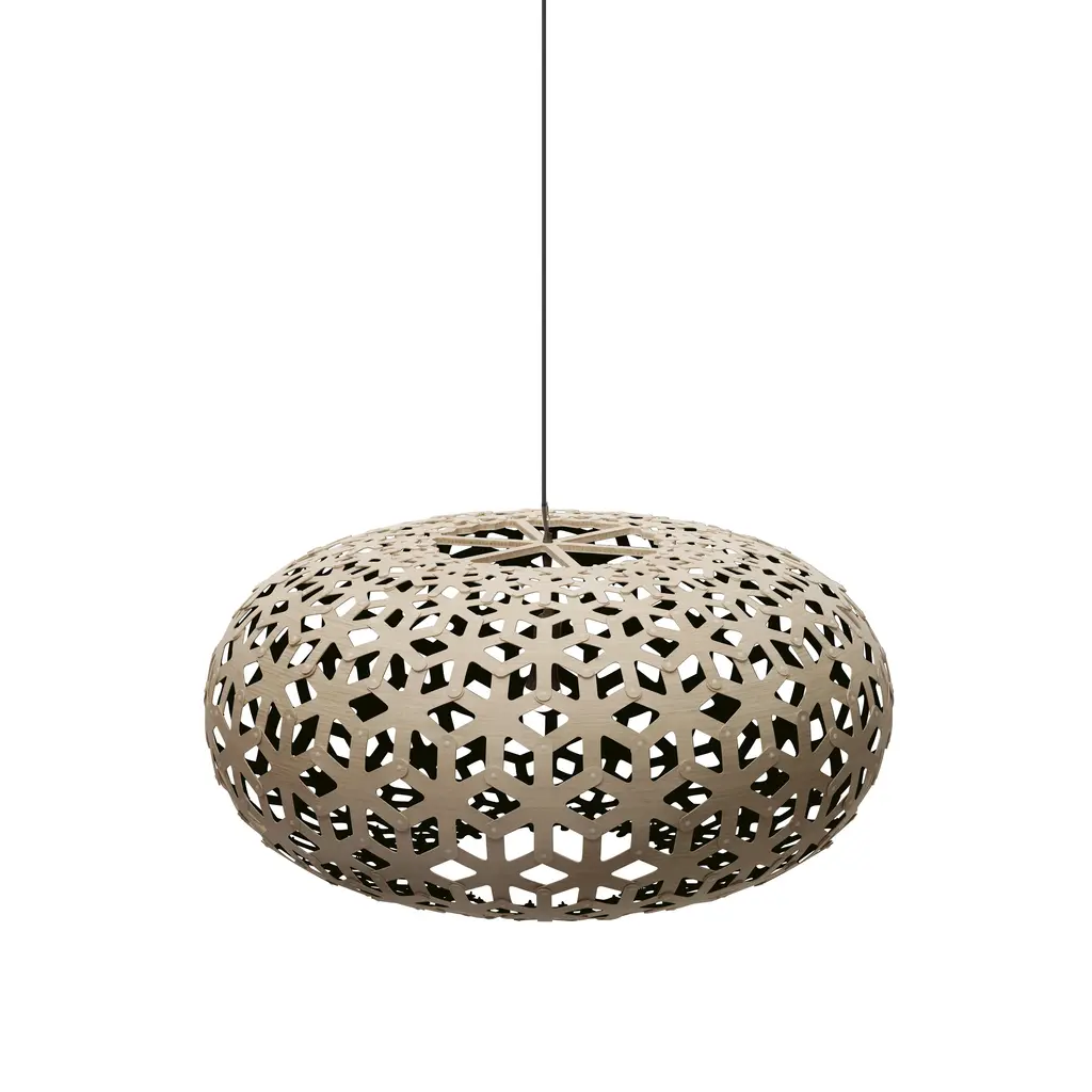 Snowflake was inspired by a journey that designer and naturalist David Trubridge made to Antarctica as a visiting artist from his New Zealand home base. Displaying a repeating geometric hexagonal pattern based on a snowflake, the pendant light is offered in a choice of 3 sizes. Crafted in sustainably sourced thin bamboo plywood, the finish can be all natural or painted, in a ready selection of a stock options. Flat-packed for eco-friendly shipping and easily assembled with push-in nylon clips. Snowflake has been honored with the illustrious Red Dot Award for its winning design.