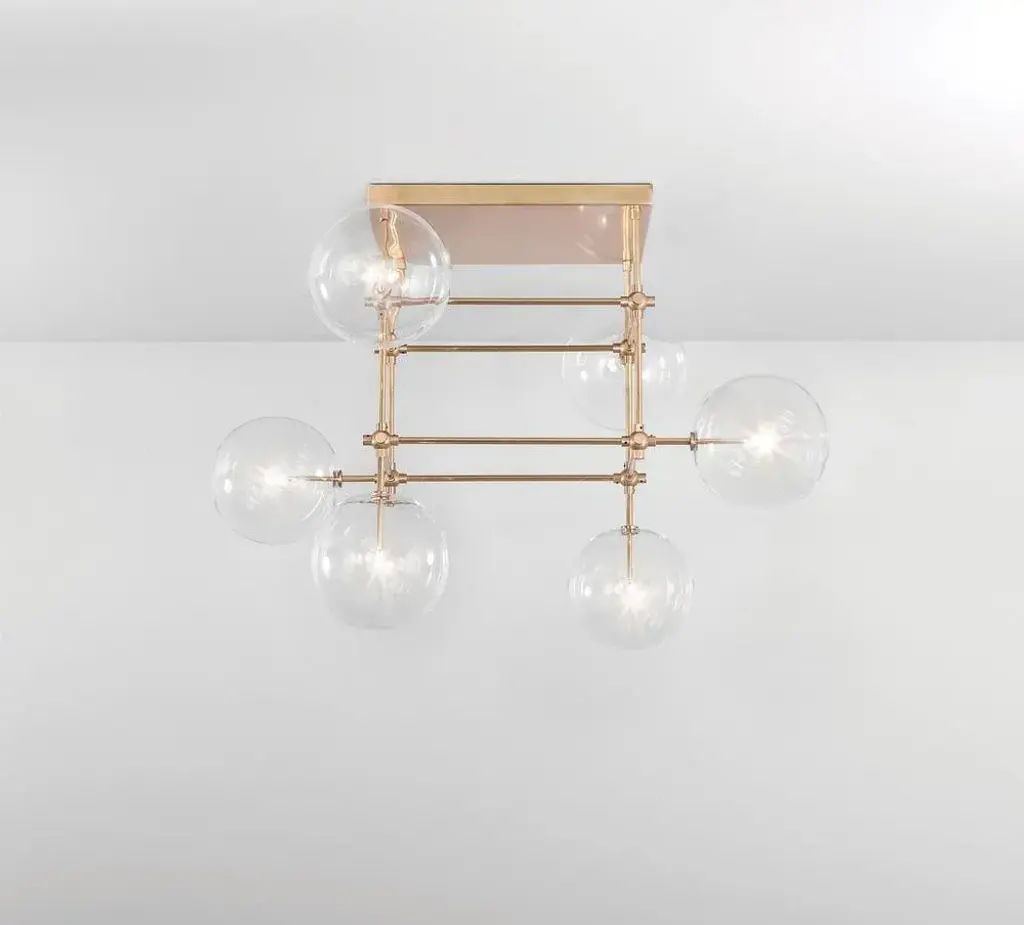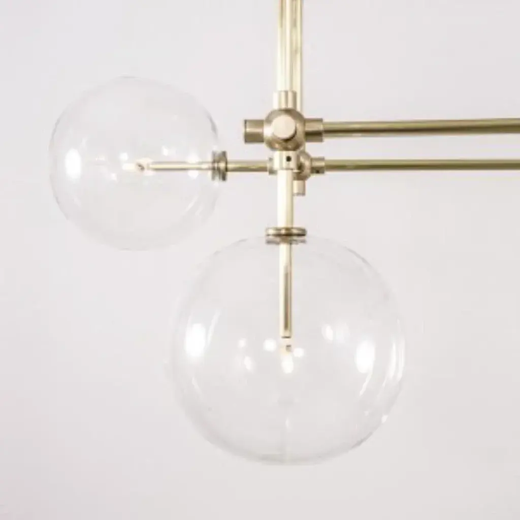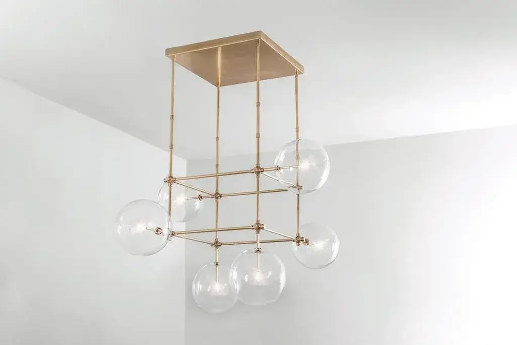 Soap 6 dt brass chandelier by schwung dimensions: w 117 x d 117 x h 128 cm materials: natural brass, hand blown glass globes finishes available: black gunmetal, polished nickel schwung is a german word, and loosely defined, means energy or momentumm of a positive manner. Synonyms: verve, zest, panache, momentum. Mission: developing lighting fixtures through simple and timeless materials, sustainably; we are committed to creating quality products that last. Beginning with the design we are constantly refining aesthetic and function. Both in the lamps themselves and throughout the manufacturing process we pursue a holistic approach to efficiency, and the reduction of environmental impact. Concept: schwung is a lighting concept, connecting aesthetic and quality through matter. An exploration of history, forms and function, elegantly fulfilling an essential need of modern life, capturing light. Our pieces play with architecture or create spaces of their own. up to 250v (europe/uk standard).