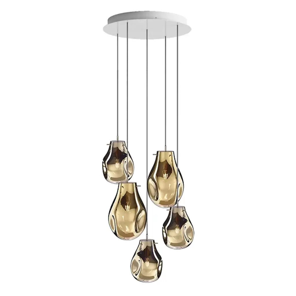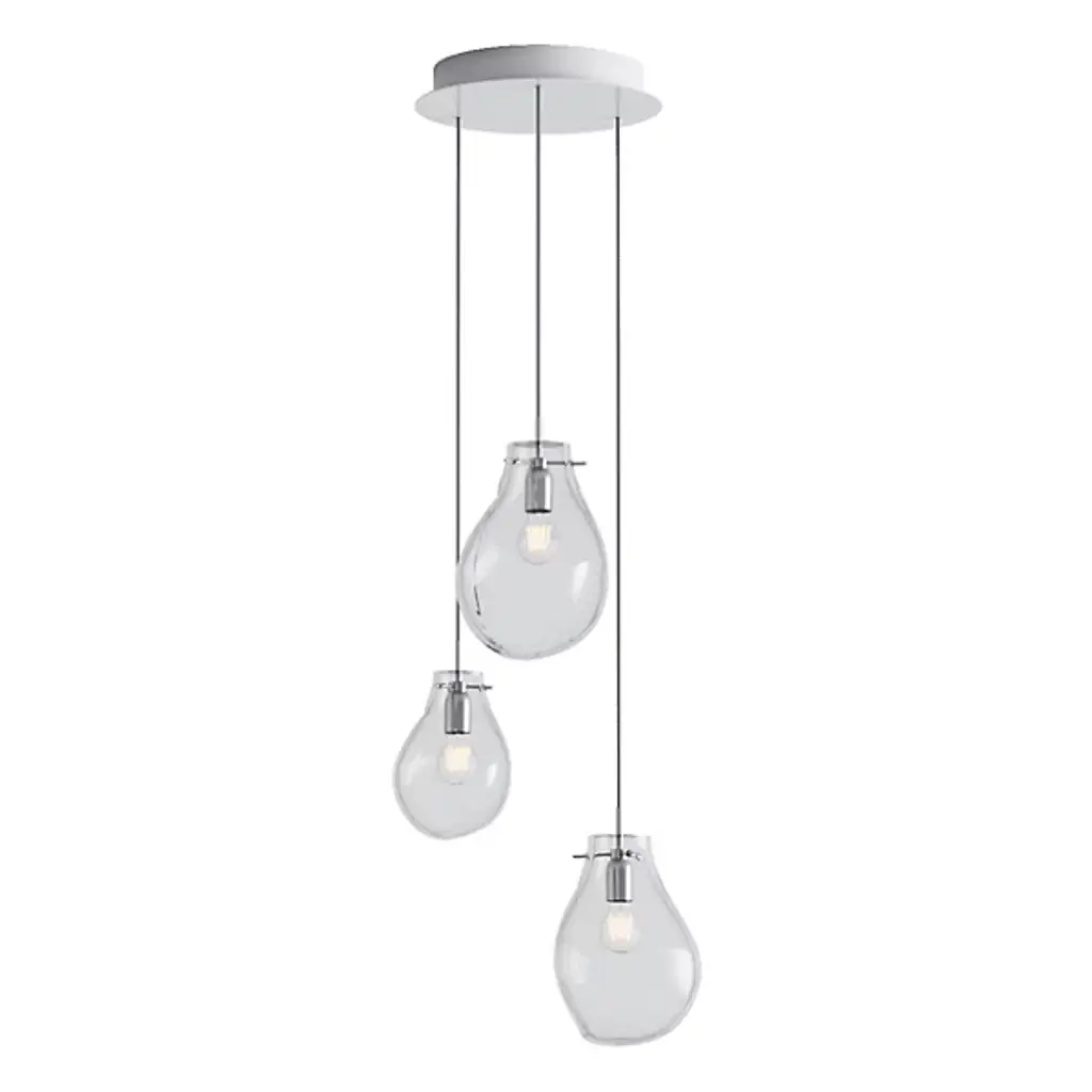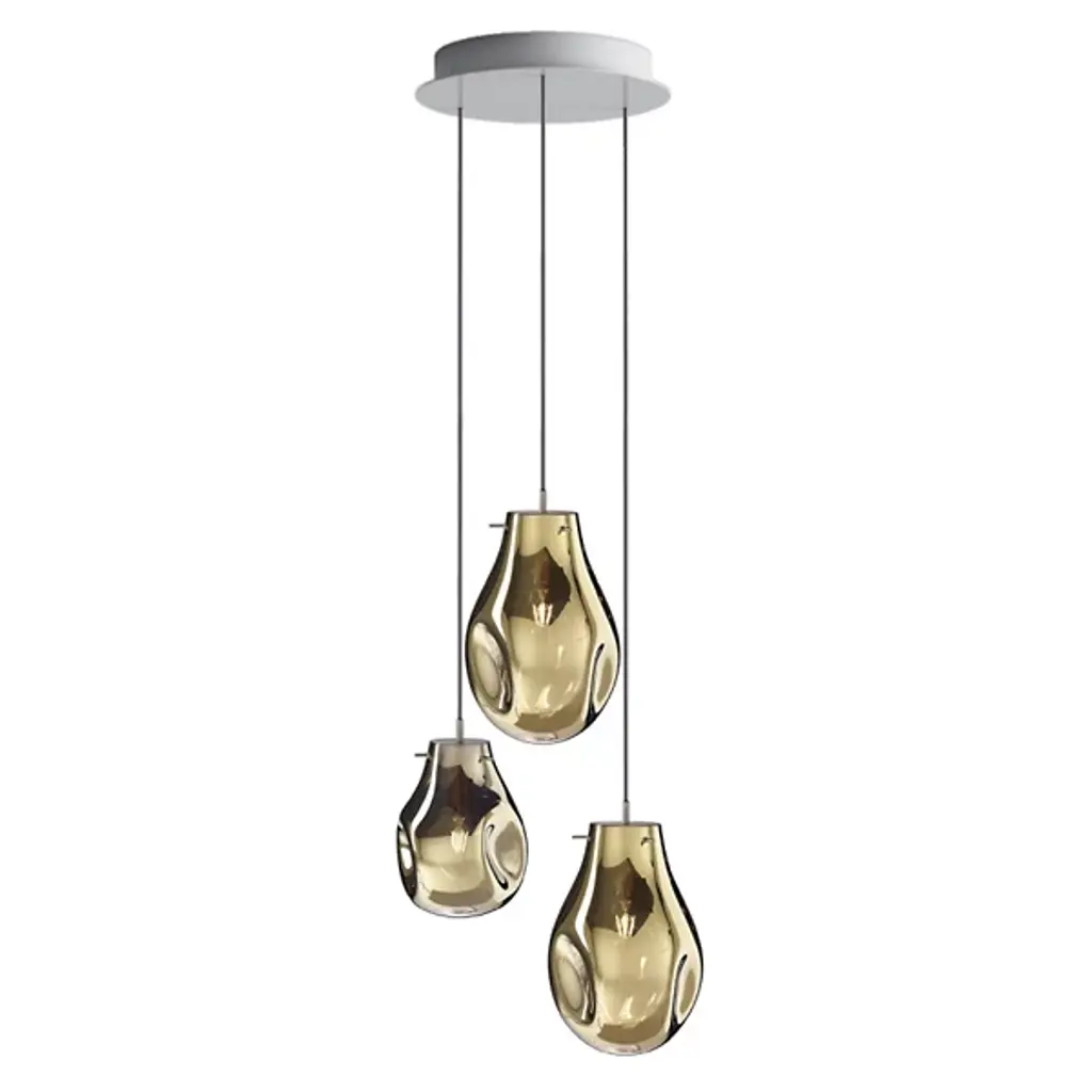 The Soap Pendant from Bomma beautifully mimics the captivating allure of soap bubbles with its varying transparency and fluid shapes. When illuminated, its metallic surface transforms into an enchanting iridescent and translucent display, revealing the crystal within. Each handblown glass droplet is uniquely shaped without a mold, resulting in one-of-a-kind forms and colors. This artistic chandelier adds a mesmerizing glow to any space, serving as a functional light source and a stunning decorative centerpiece, truly elevating any room.