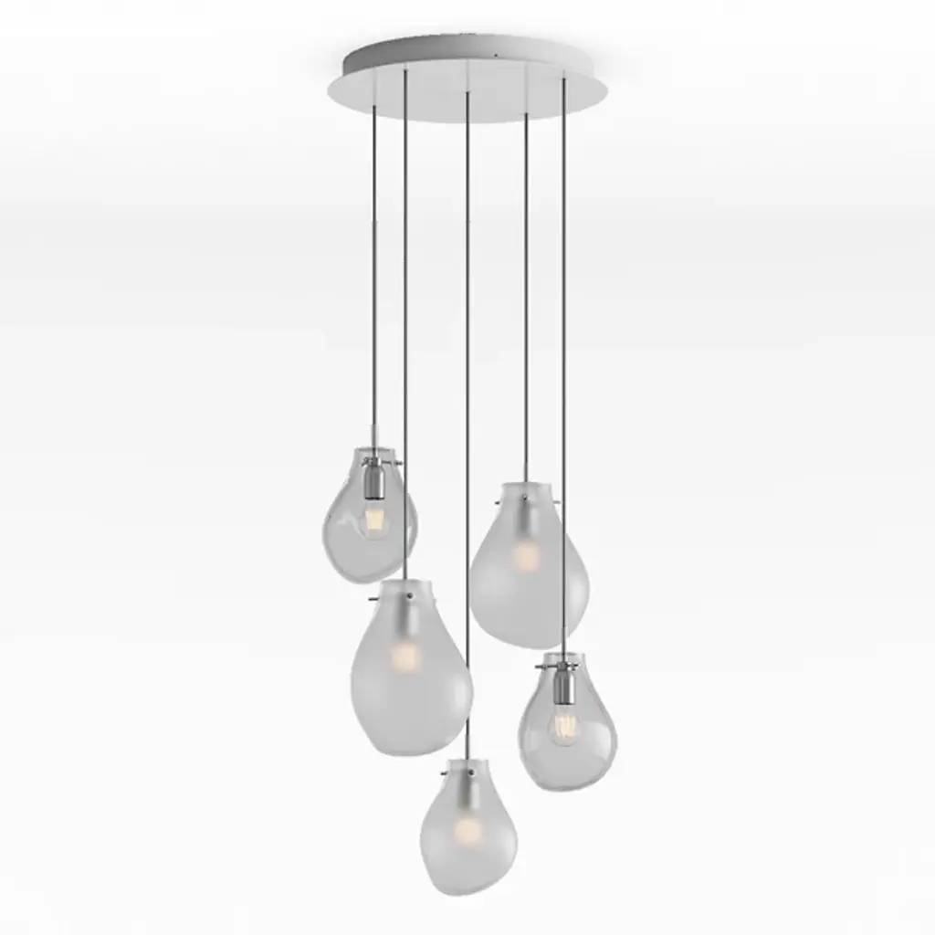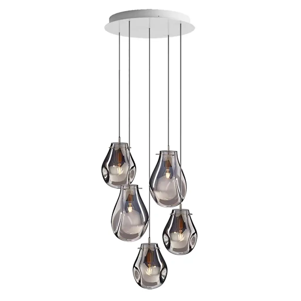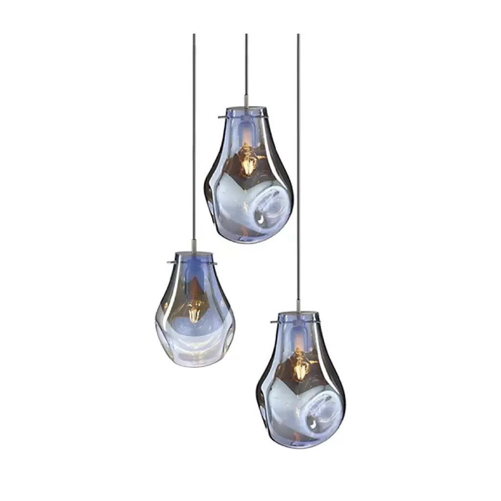 The Soap Pendant from Bomma beautifully mimics the captivating allure of soap bubbles with its varying transparency and fluid shapes. When illuminated, its metallic surface transforms into an enchanting iridescent and translucent display, revealing the crystal within. Each handblown glass droplet is uniquely shaped without a mold, resulting in one-of-a-kind forms and colors. This artistic chandelier adds a mesmerizing glow to any space, serving as a functional light source and a stunning decorative centerpiece, truly elevating any room.