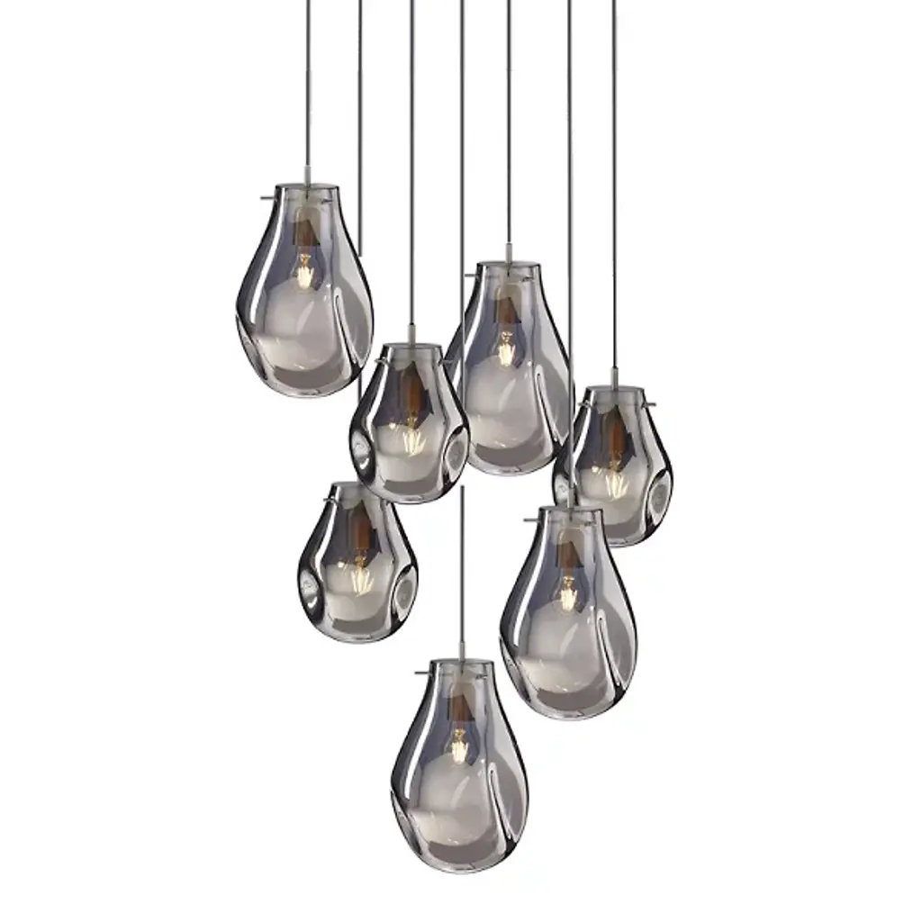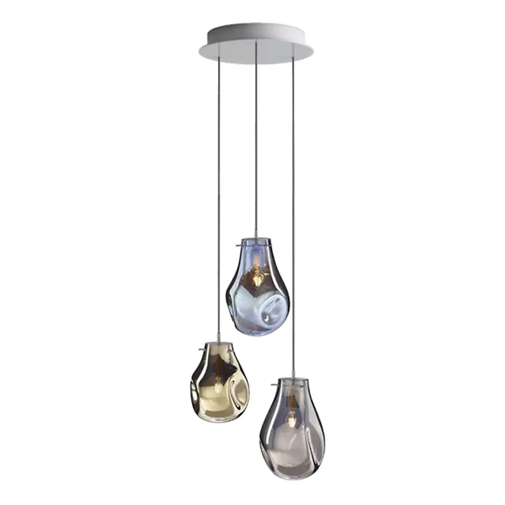 The Soap Pendant from Bomma beautifully mimics the captivating allure of soap bubbles with its varying transparency and fluid shapes. When illuminated, its metallic surface transforms into an enchanting iridescent and translucent display, revealing the crystal within. Each handblown glass droplet is uniquely shaped without a mold, resulting in one-of-a-kind forms and colors. This artistic chandelier adds a mesmerizing glow to any space, serving as a functional light source and a stunning decorative centerpiece, truly elevating any room.