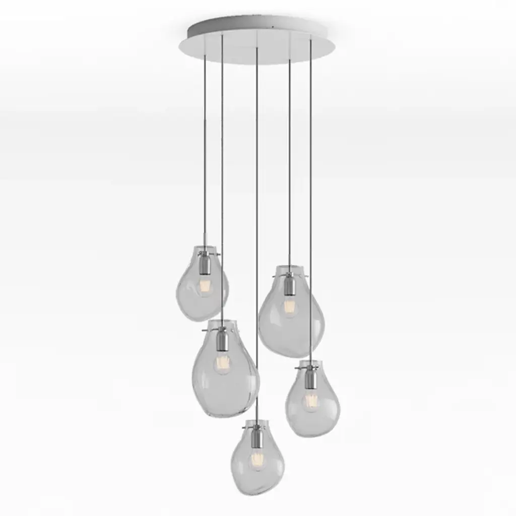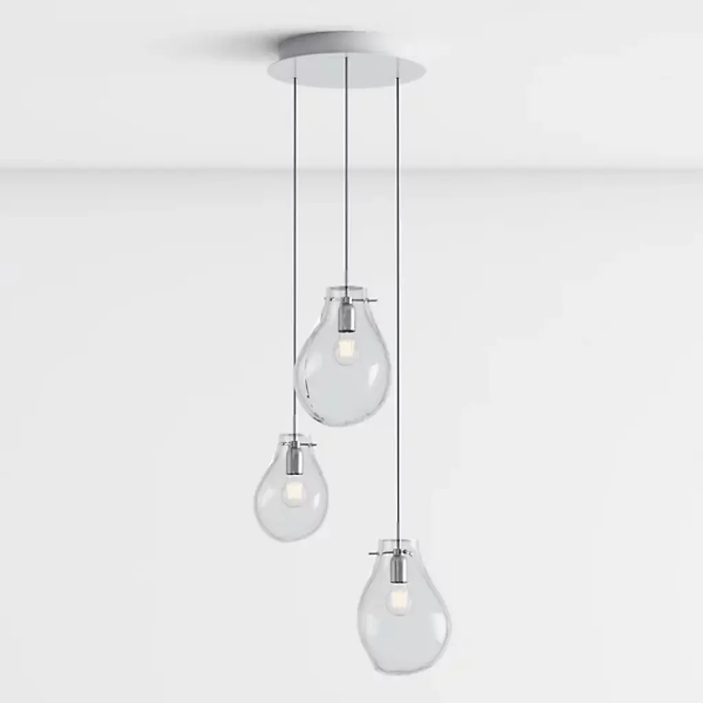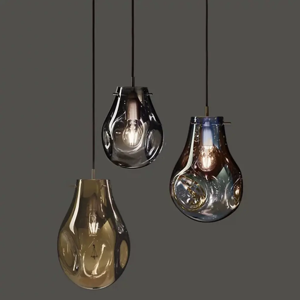 The Soap Pendant from Bomma beautifully mimics the captivating allure of soap bubbles with its varying transparency and fluid shapes. When illuminated, its metallic surface transforms into an enchanting iridescent and translucent display, revealing the crystal within. Each handblown glass droplet is uniquely shaped without a mold, resulting in one-of-a-kind forms and colors. This artistic chandelier adds a mesmerizing glow to any space, serving as a functional light source and a stunning decorative centerpiece, truly elevating any room.