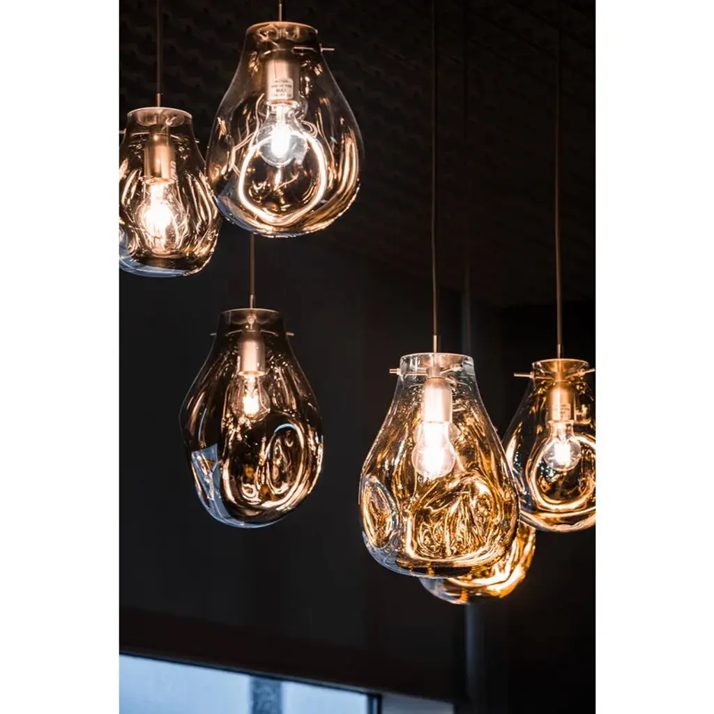Bomma's Soap pendant captures the playful lightness and fleeting beauty of soap bubbles. Designed by Ota Svoboda, the pendant lamp is made from crystal glass through a mold-free mouth-blowing technique. This unique process ensures that each piece is entirely one-of-a-kind –just like every soap bubble is! The Soap pendant makes a stunning statement on its own but reaches new heights of brilliance when grouped into a radiant cluster of shimmering lights.