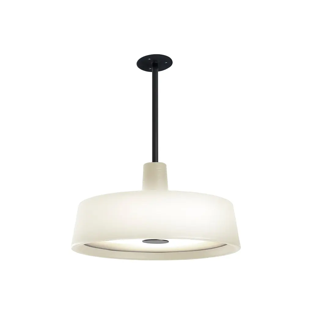 Marset's outdoor pendant based on traditional utilitarian fixtures is also offered in this sturdy fixed-stem version. Recast in modern materials, the Soho Outdoor is fabricated in rotary molded polyethylene. The accompanying metal support is finished in black lacquer with an anti-oxidant cataphoresis treatment that makes it suitable for outdoor use in wet areas. Fully dimmable LED light source fitted with a methacrylate opal diffuser for superbly even light.