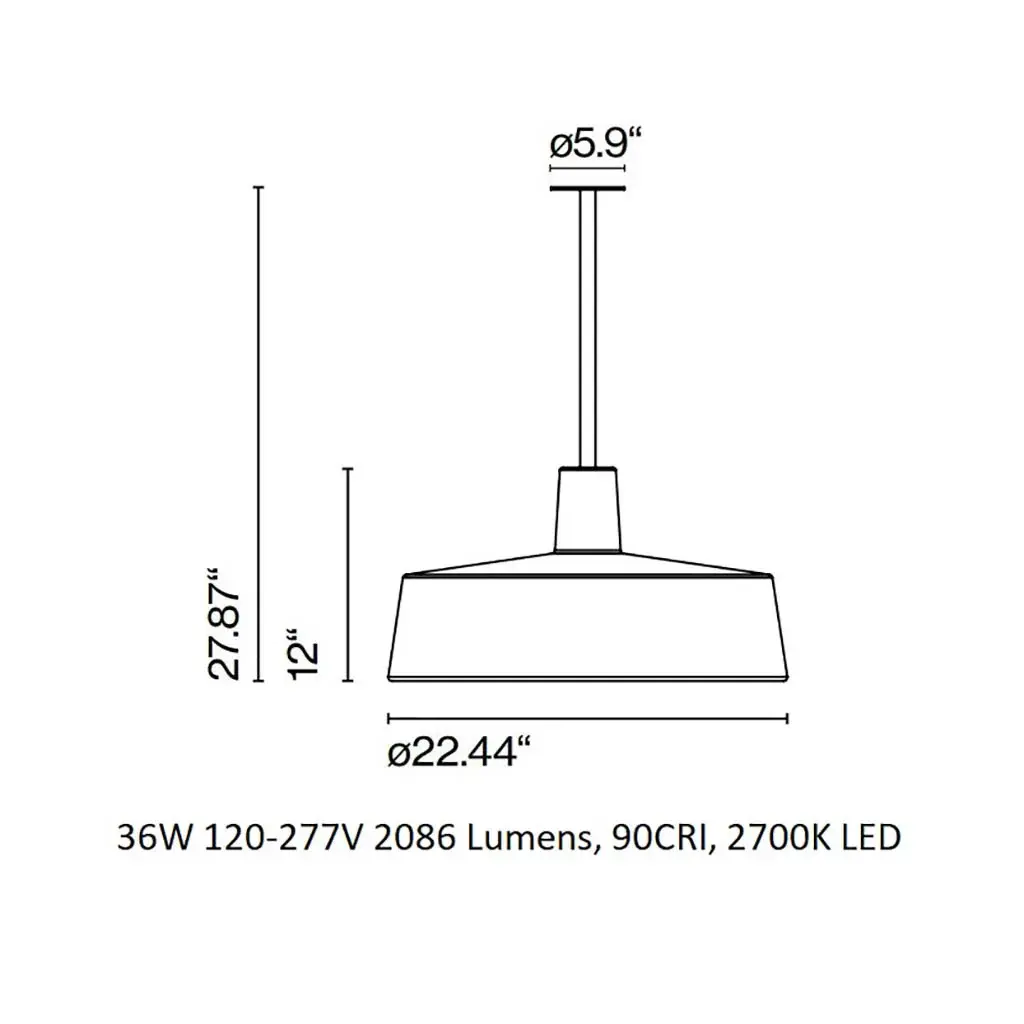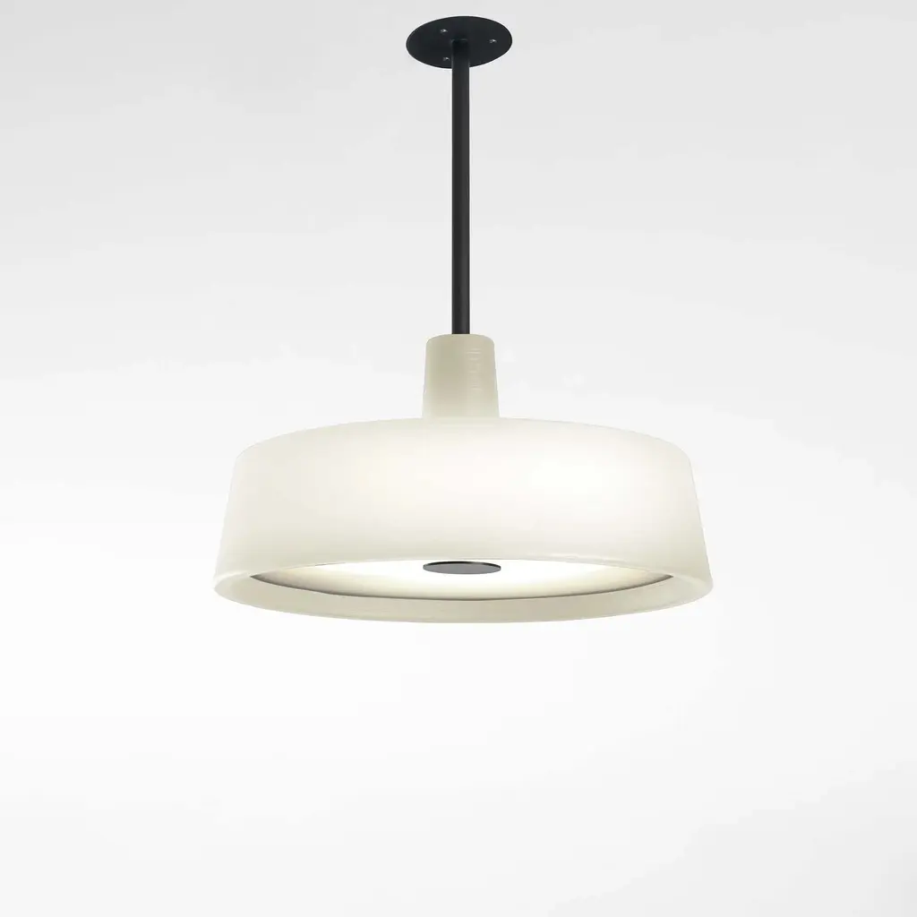 Experience timeless sophistication with the Soho Outdoor LED Fixed Stem Pendant Light from Marset. The classic shade, crafted from rotation-molded polyethylene, features a gleaming inner finish and open bottom, while the built-in LED light source casts warm, welcoming downward lighting. Perfect for adding a touch of modern elegance to any covered patio or outdoor entertainment space, this pendant brings sleek, industrial style to your home. Highlights