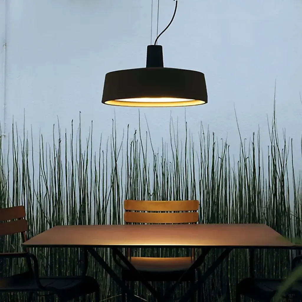 The Soho Outdoor LED Pendant from Marset is designed by Joan Gaspar. This fixture pays tribute to the light fixtures of taverns, markets, and cafeterias. It is built to easily withstand the elements, as it is made from rotomolded polyethylene, housing a methacrylate opal diffuser. This pendant brings brilliant, integrated LED illumination to your environment. The simple design of its rounded framework is complemented by a cylindrical crown, making it versatile and suited for various décor styles.