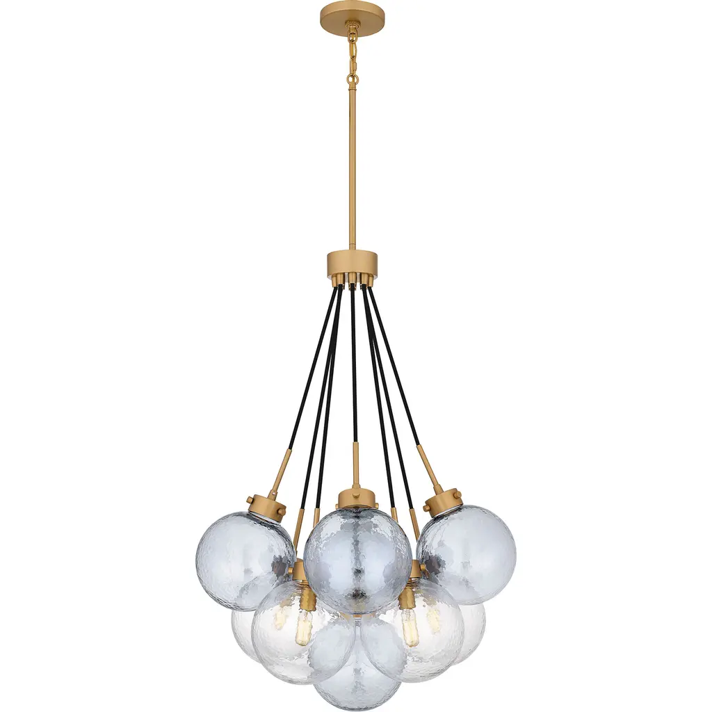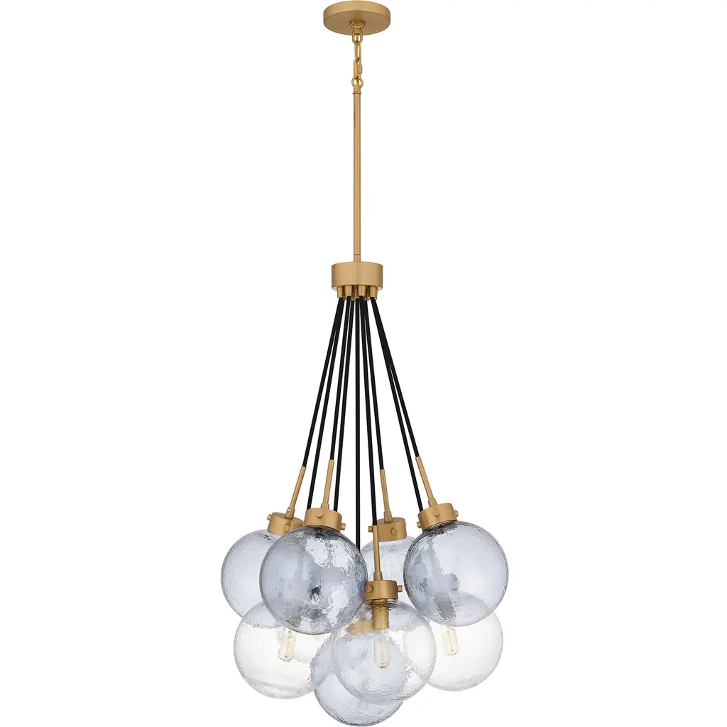 Soiree takes a fun, artful approach to modern pendant lighting. The spectacular design features a brushed weathered brass finish and a cluster of glacial glass spheres, alternating between clear and smoked glass. With its distinctive styling, Soiree makes a truly artistic statement over a dining room table or in a living room.