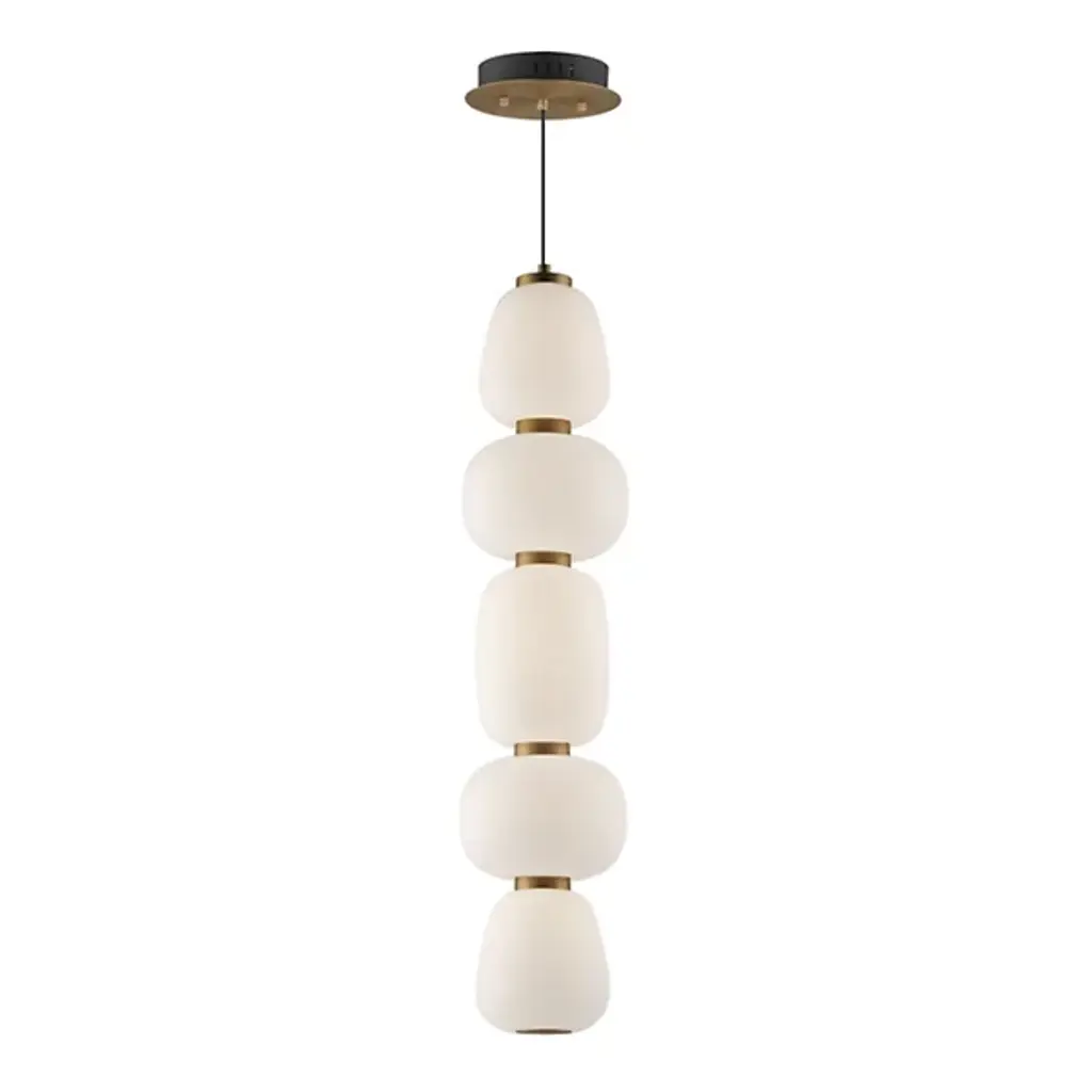 The Soji LED Mini Pendant from ET2 Lighting takes cues from the quiet elegance of traditional Japanese lanterns, reinterpreting their balance and simplicity in a more contemporary form. A stepped circular canopy anchors a slender suspension cable, which supports rounded, softly translucent, satin-white glass shades. Each shade is accented with contrasting steel collars, while efficient LEDs emit a warm, diffused glow through the glass, creating a calming, layered radiance.
