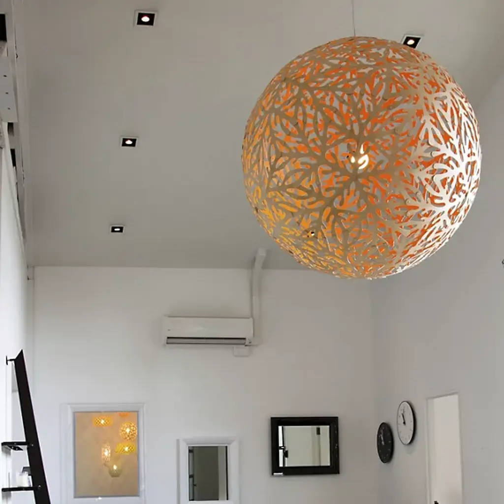 The Sola Pendant from David Trubridge enriches interiors with an intense, intricate interplay of light and shadow. Designed in New Zealand by Trubridge, its spherical structure is composed of slender bamboo plywood segments that interlock into a decorative shell of frond-like extensions. Originating from the Trubridge’s ‘Icarus’ installation shown in Milan in 2010, the piece evokes the myth of flight. The light within projects a vivid, swirling pattern across surrounding surfaces with the drama of solar flares, balancing organic presence with bold, luminous light.