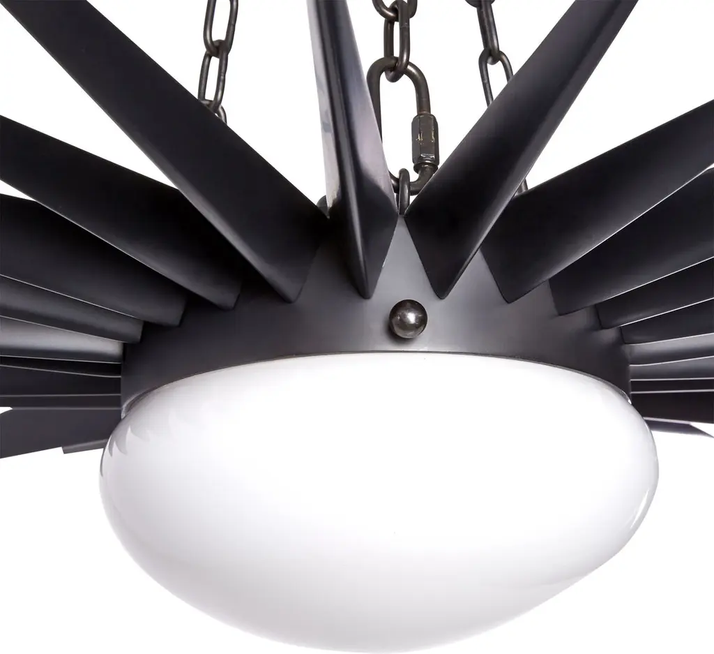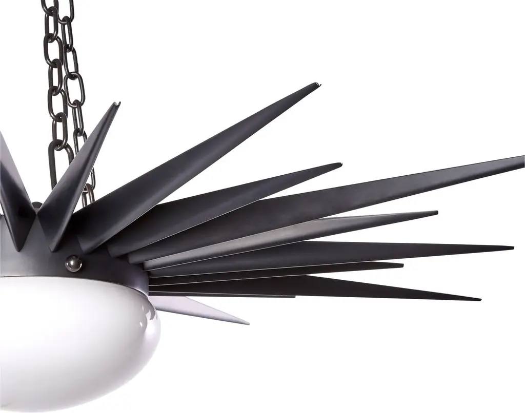 Designed by us and available only at One Kings Lane: This midcentury-inspired pendant features an impressive steel body in a classic sunburst design. A deep bronze finish completes the look and adds to this fixture's eye-catching appeal. Hardwired.