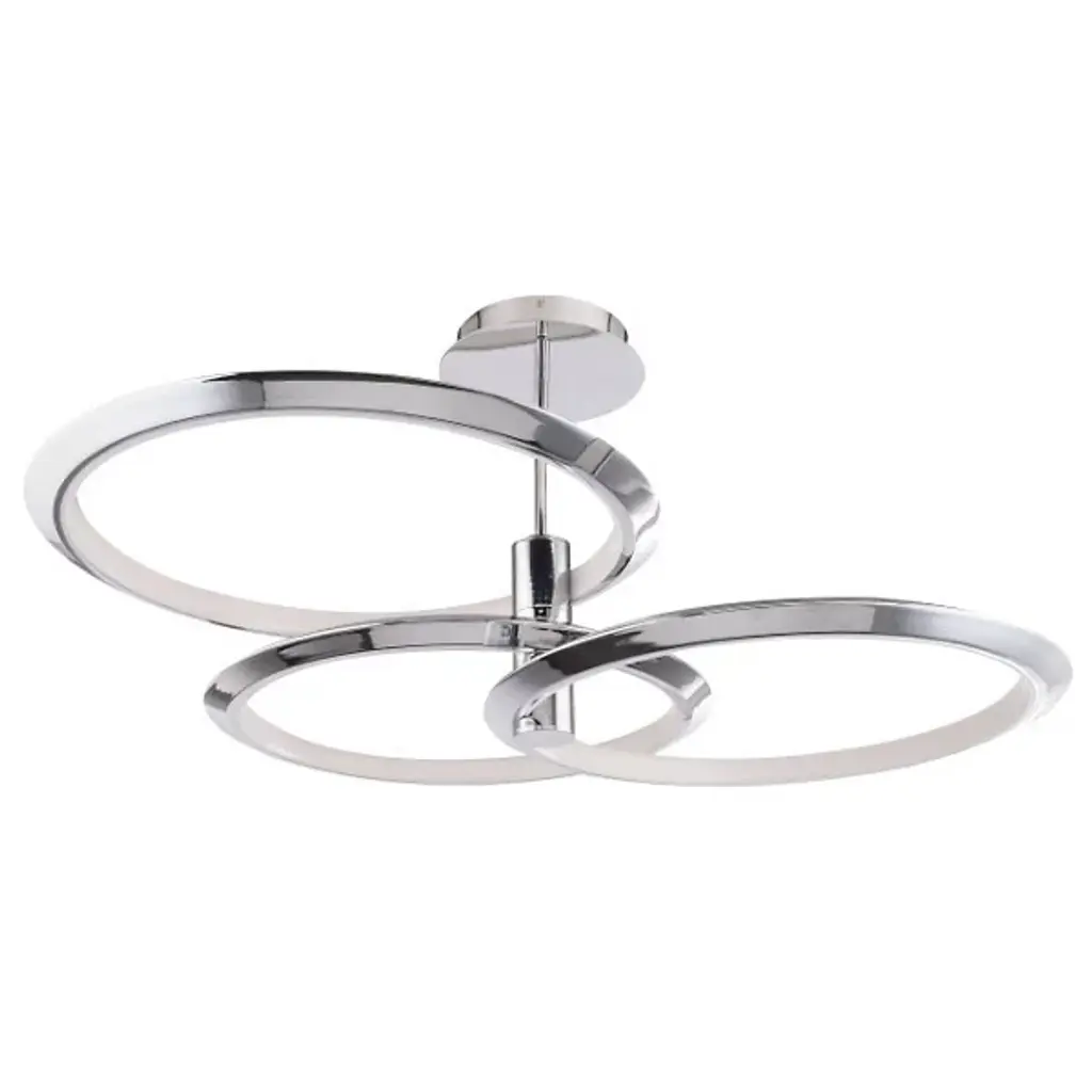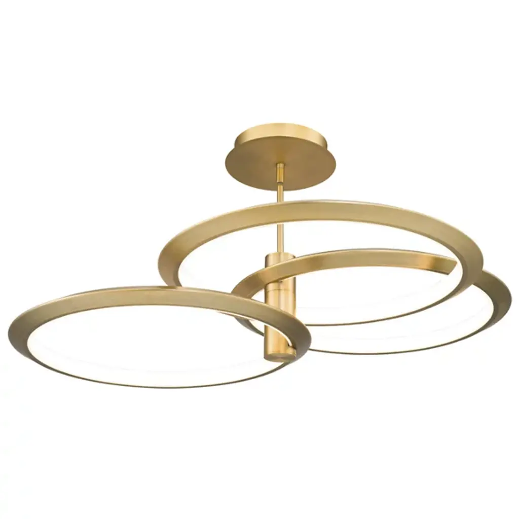 The Solaris LED Pendant by dweLED is a striking pendant ideal for use in formal dining areas, grand foyers, and entryways. Comprised of interlaced metal rings, this gorgeous fixture houses a white acrylic diffuser that beautifully filters 31W of LED lamping. For added customization, this fixture can be mounted on sloped or standard ceilings, can be mounted semi-flush or pendant style, and damp rated for use in locations subject to ambient moisture exposure.