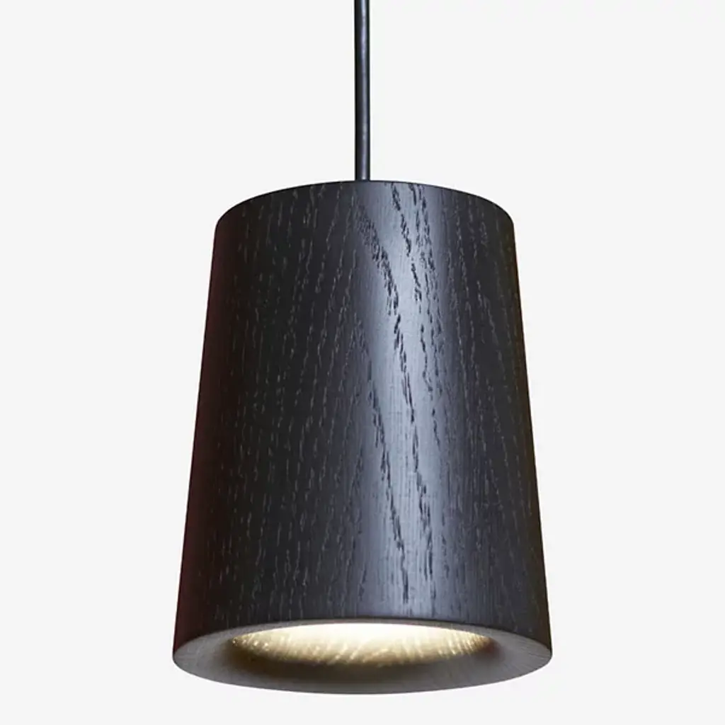 The Solid Cone Pendant from Case Furniture is designed by Terence Woodgate. This pendant seamlessly blends contemporary aesthetics with functionality, featuring a cone-shaped silhouette crafted from powder-coated steel and wood. The contrasting materials add a dynamic touch, creating a visually intriguing focal point. Illuminated by LED, this pendant provides a warm and inviting glow. Easily adjust the brightness level with a separately sold ELV dimmer. A sturdy ceiling canopy lets it easily maintain its suspension in midair.