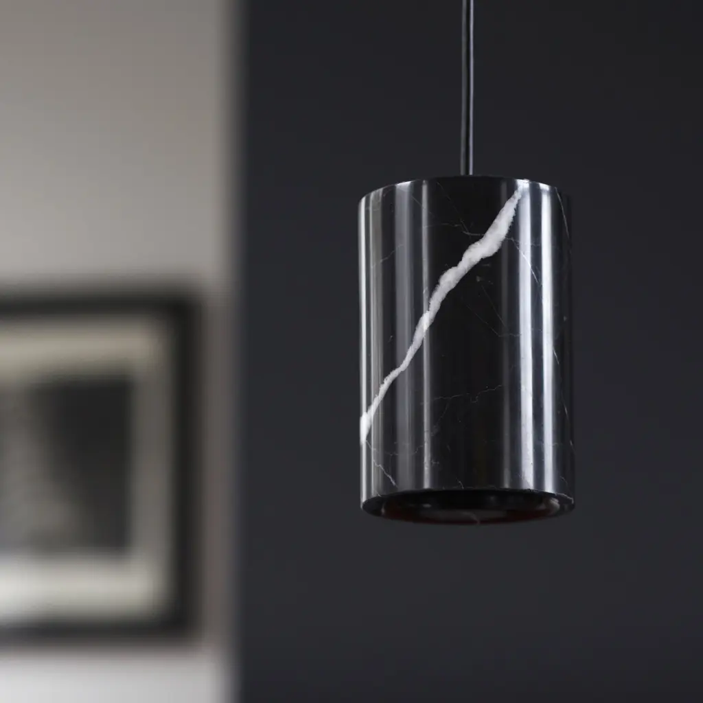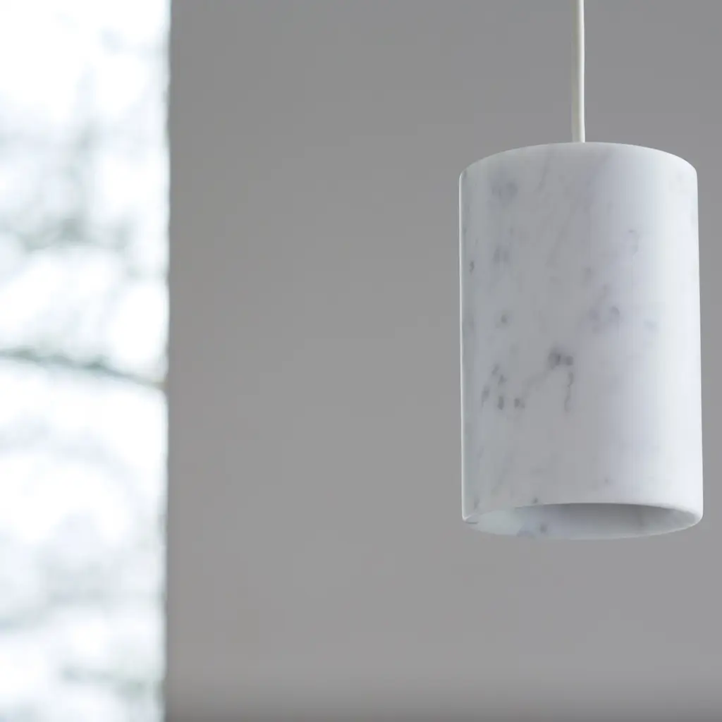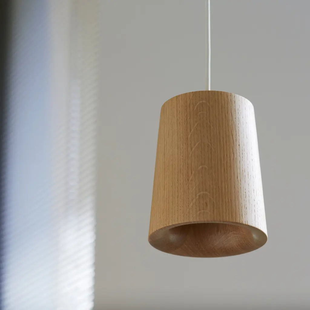 Terence Woodgate endorses the versatility of a simple form with his Solid Pendant which he fashions in enticing oak, walnut and genuine marble versions. In either pure cylindrical or conical form with a rounded inner edge at the bottom as a design signature, each shade body is completely unique in the variation of its natural materials.