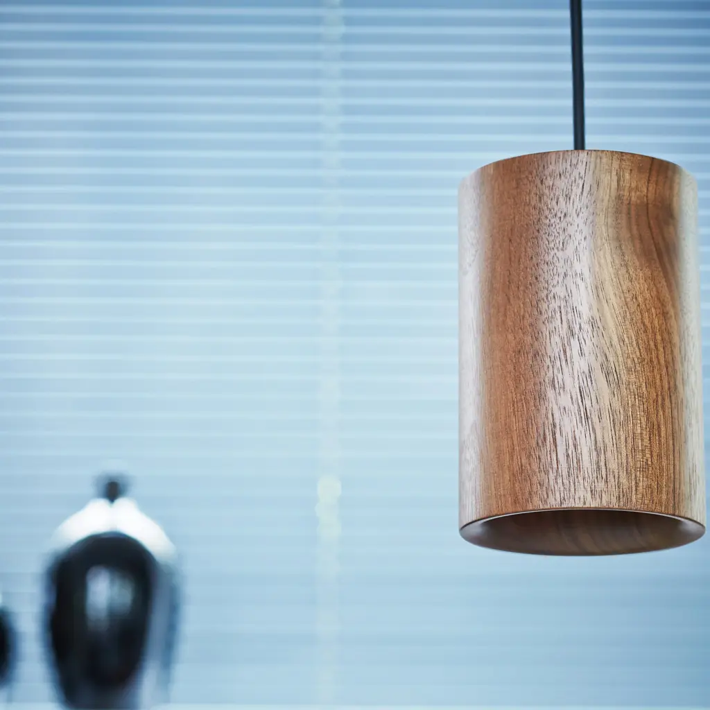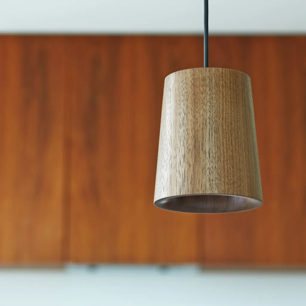 Terence Woodgate endorses the versatility of a simple form with his Solid Pendant which he fashions in enticing oak, walnut and genuine marble versions. In either pure cylindrical or conical form with a rounded inner edge at the bottom as a design signature, each shade body is completely unique in the variation of its natural materials.