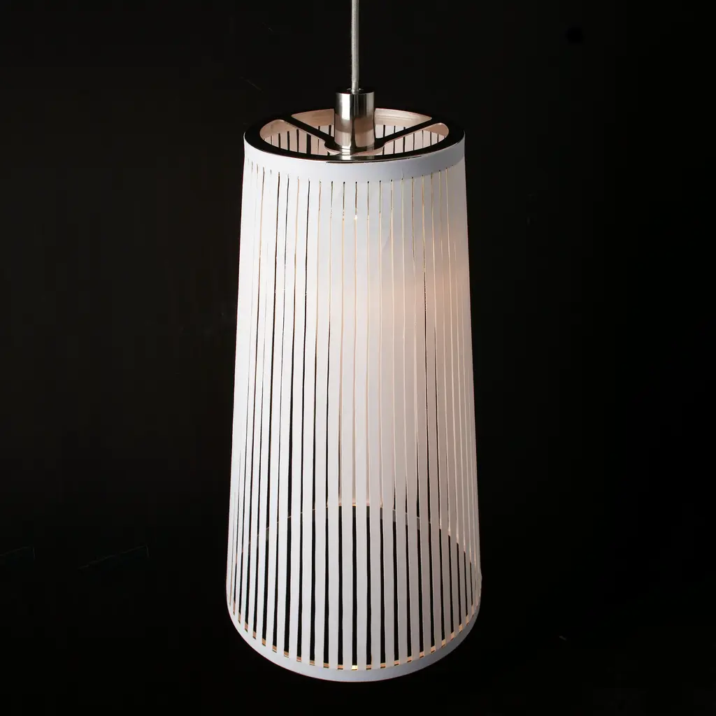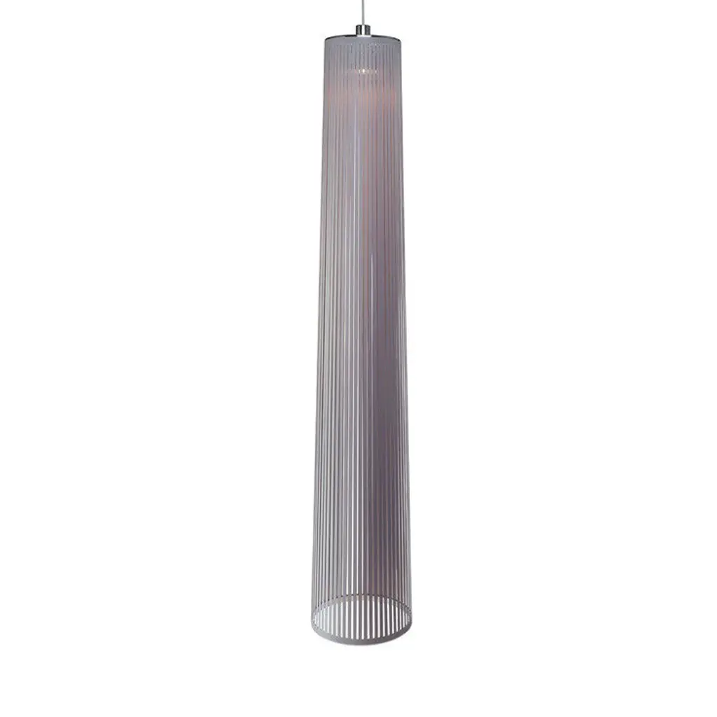 Shadows and light. The Solis Pendant Light mimics the sun's streaming rays via laser-cut openings in its elongated cylinder. Carmine Deganello's design for Pablo features a super-light synthetic fabric held in tension between two polished rings. The lamp radiates ribbons of direct light that cast patterns over a space as well as an overall diffused illumination. Solis can be used as a pendant or hung from a wall and includes mounting hardware for both options.