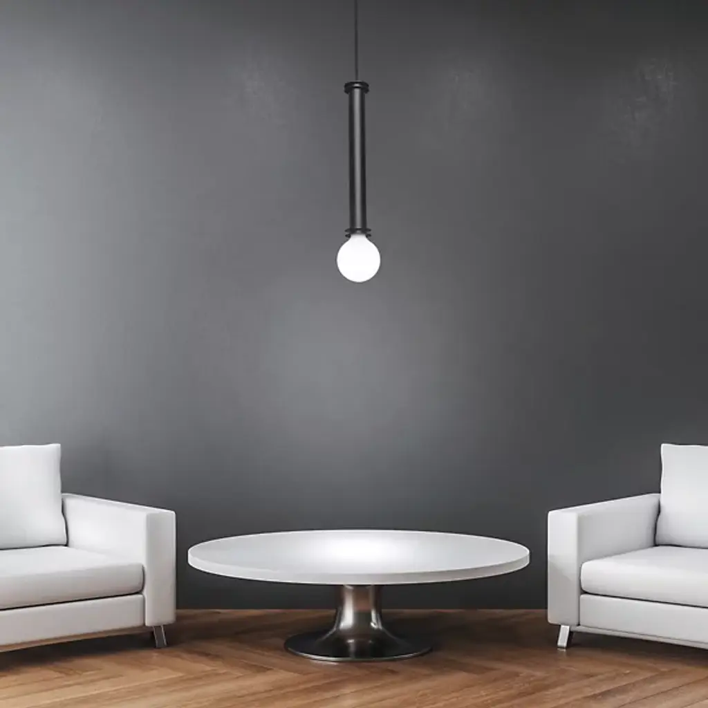 Presented by Ultralights, the Solo 23513 Mini Pendant is a minimally styled luminary with an elevated attention to detail. It features a slim and metallic cylindrical bodice with an embellished decorative rim formation on either end, while exposed lamping provides ample and pleasant light flow to animate locales of choice.