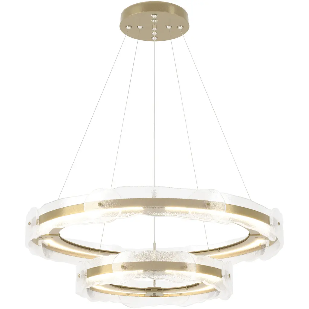 An elegant, two-tiered pendant featuring a graceful surround of hand-poured art glass entices you to contemplate the beauty of this pendant. Each of the textured glass panels is unique — handmade by the Vermont-based artisans at AO Glass.