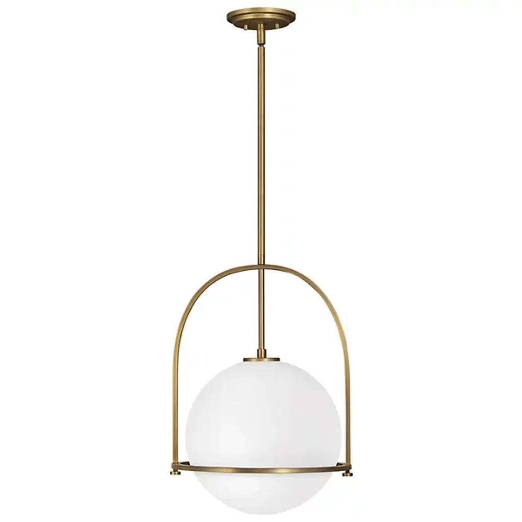 The Hinkley Lighting Somerset Pendant Light is classically chic by subtly combining modern concepts with vintage appeal. The etched opal glass shade weightlessly floats in the steel yolk, the illumination being evenly dispersed all throughout the space. The understated visible knobs give the piece a sense of authenticity as well as a vintage flair.