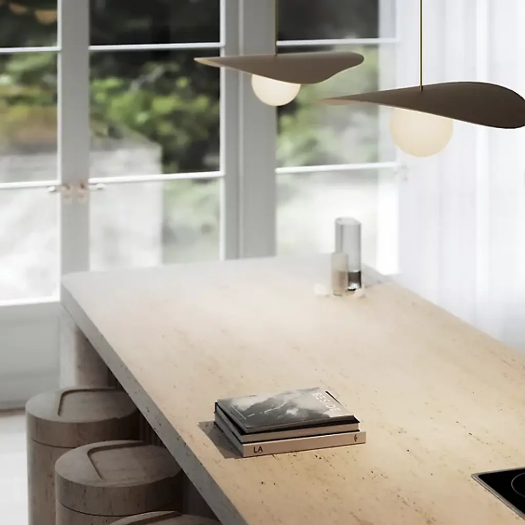 The Sopal Pendant by Luminaire Authentik is a minimalist light fixture that features a globe-shaped shade of frosted glass held by a slim steel backplate. A beautifully diffused glow emanates from an LED lamp. With its streamlined profile, Krema brings pared-back sophistication to exterior walls. Let it spark patio conversations and light up garden paths. Poolside leisure sessions will gain an illuminated edge after the sun sets.