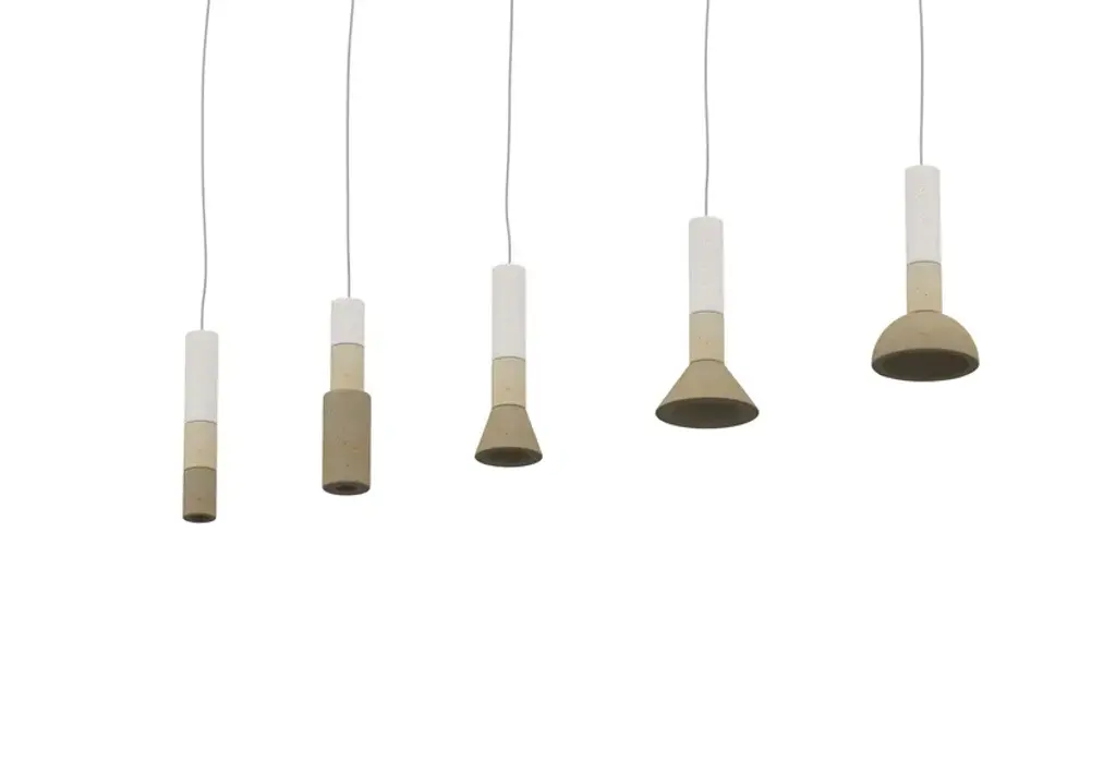 The Sospese pendant lamp collection – designed by gumdesign – features multiple shapes derived from a simple cylinder made of three overlapping elements. These shapes transform with subtle design modifications at the end of the lighting fixture, allowing light to diffuse more or less across the horizontal plane below.