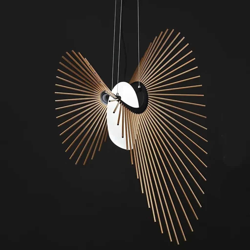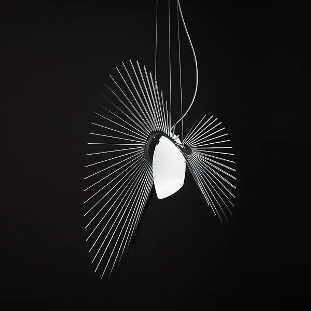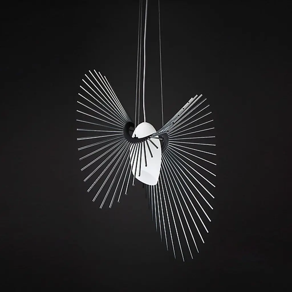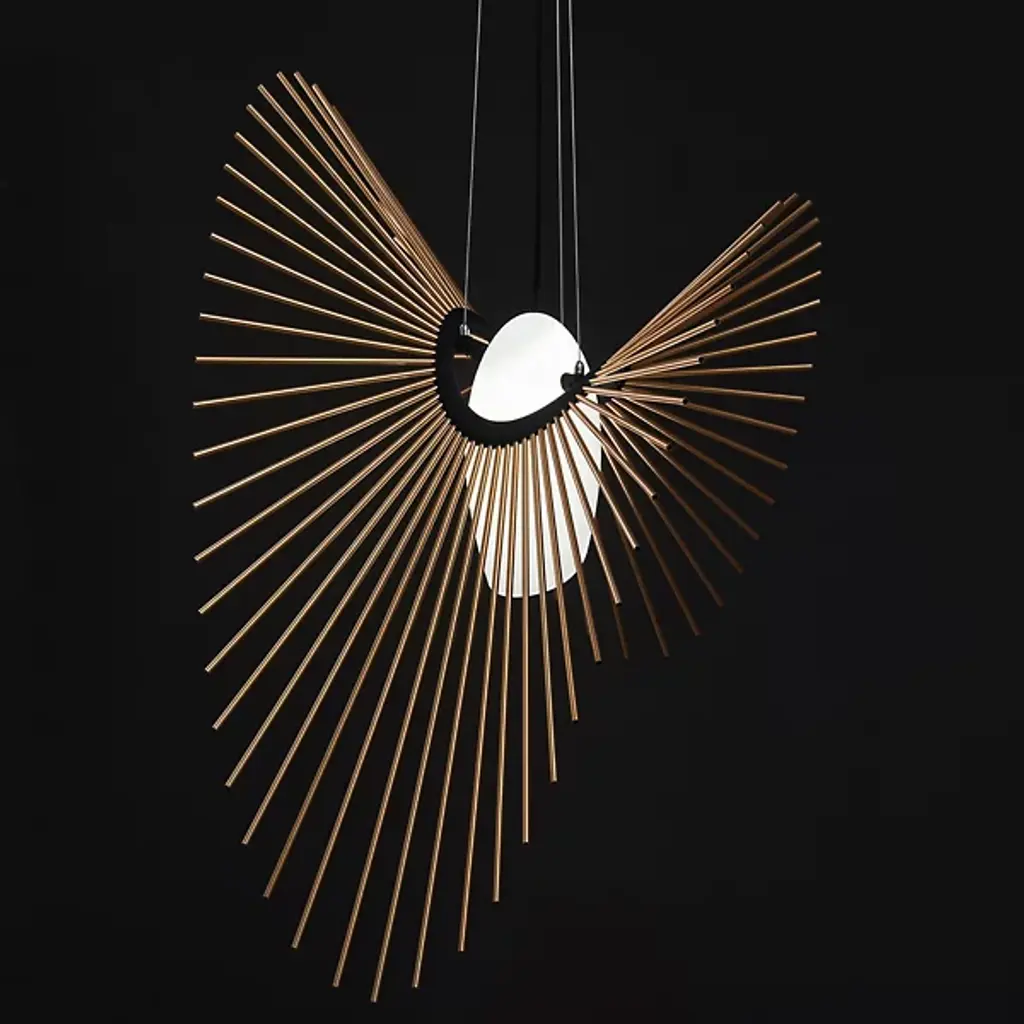 Designed as a celebration of the creating power of the universe. The Space Pendant from Loomiosa sets a room in motion with a flowing repetition of shapes and soft, filtering light evocative of bright stars. Creator Daniel Mato’s work finds the intersection between art and science. This fascination translates to pieces that are both ordinary and extraordinary. The piece hangs with fine wire to accentuate the floating motif. A glass shade hangs at the core. Light shines through it and catches onto the gestural rods that flow across like an orbit. These rods create a dramatic silhouette that leaves one with a wondrous impression.