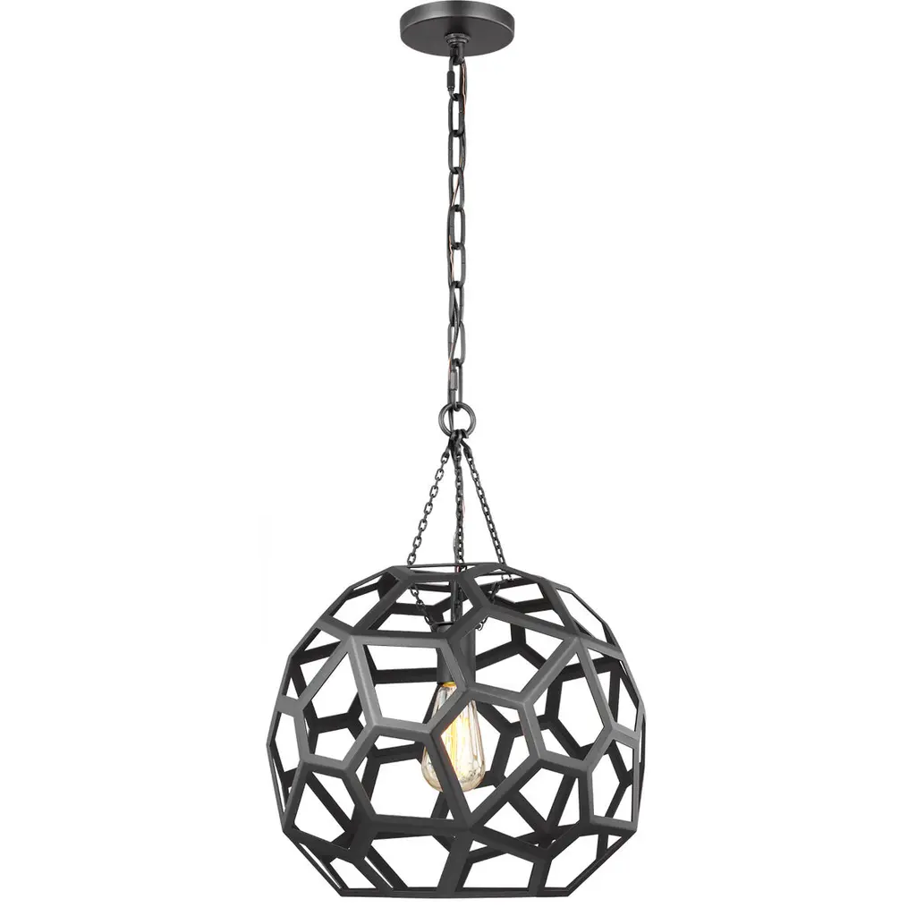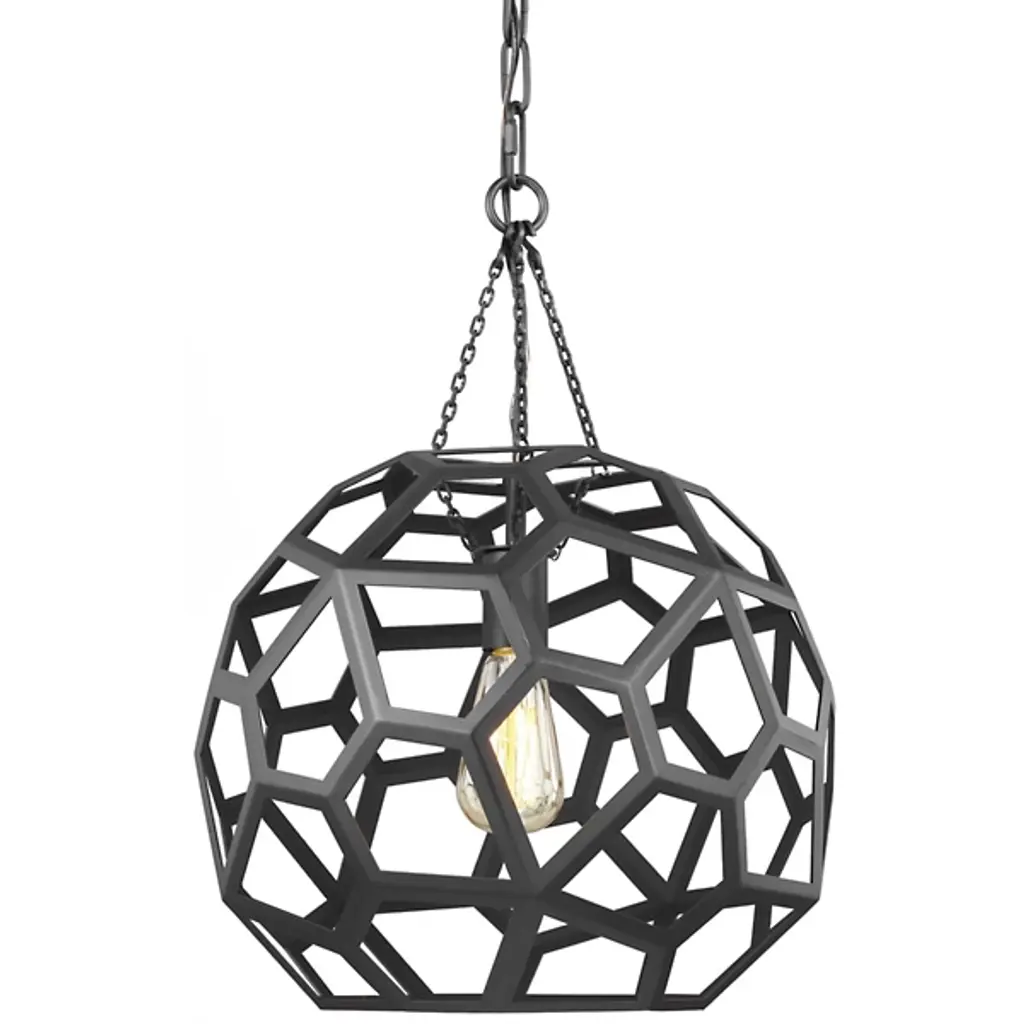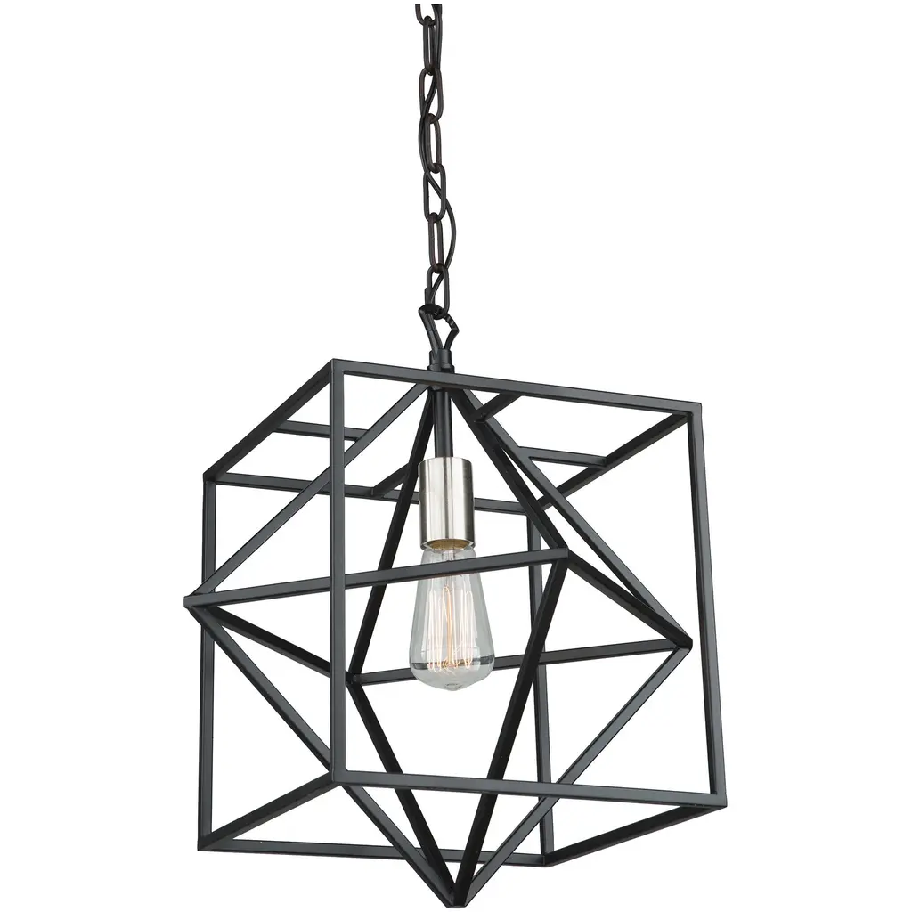 Spatial showcases a modern form that complements Urban Industrial and Bohemian styles. Overscaled geometric frames feature designs inspired by metal trusses and the art of engineering. A Matte Black finish is highlighted by clear globe shades. The one-light mini-pendant is ideal for kitchens.
