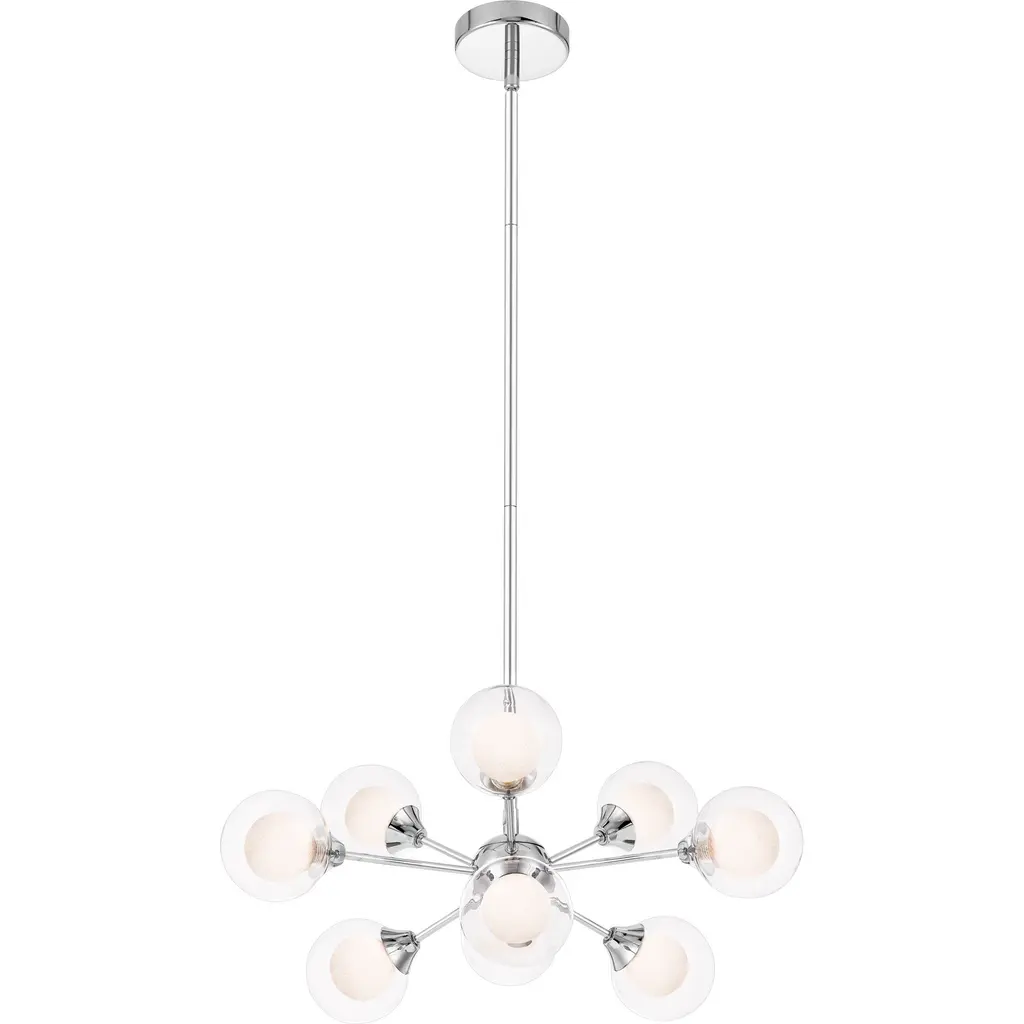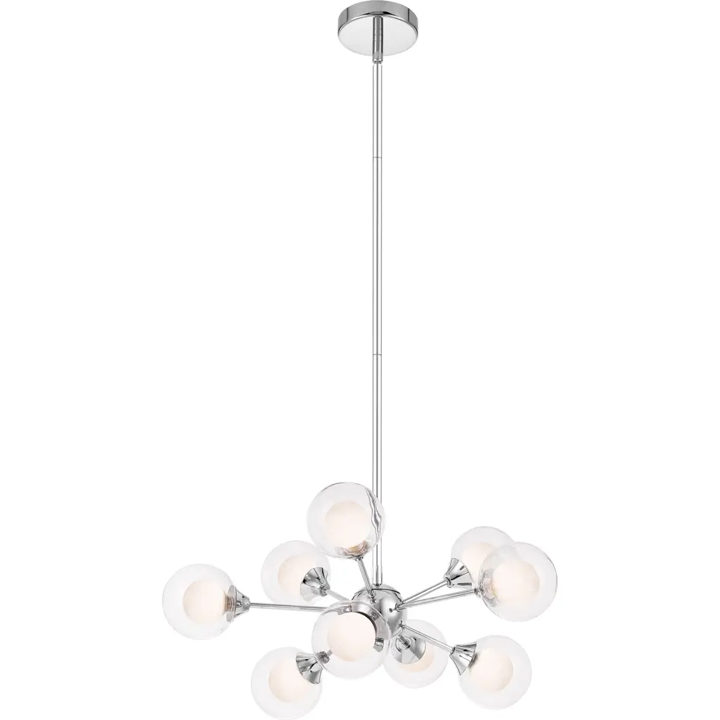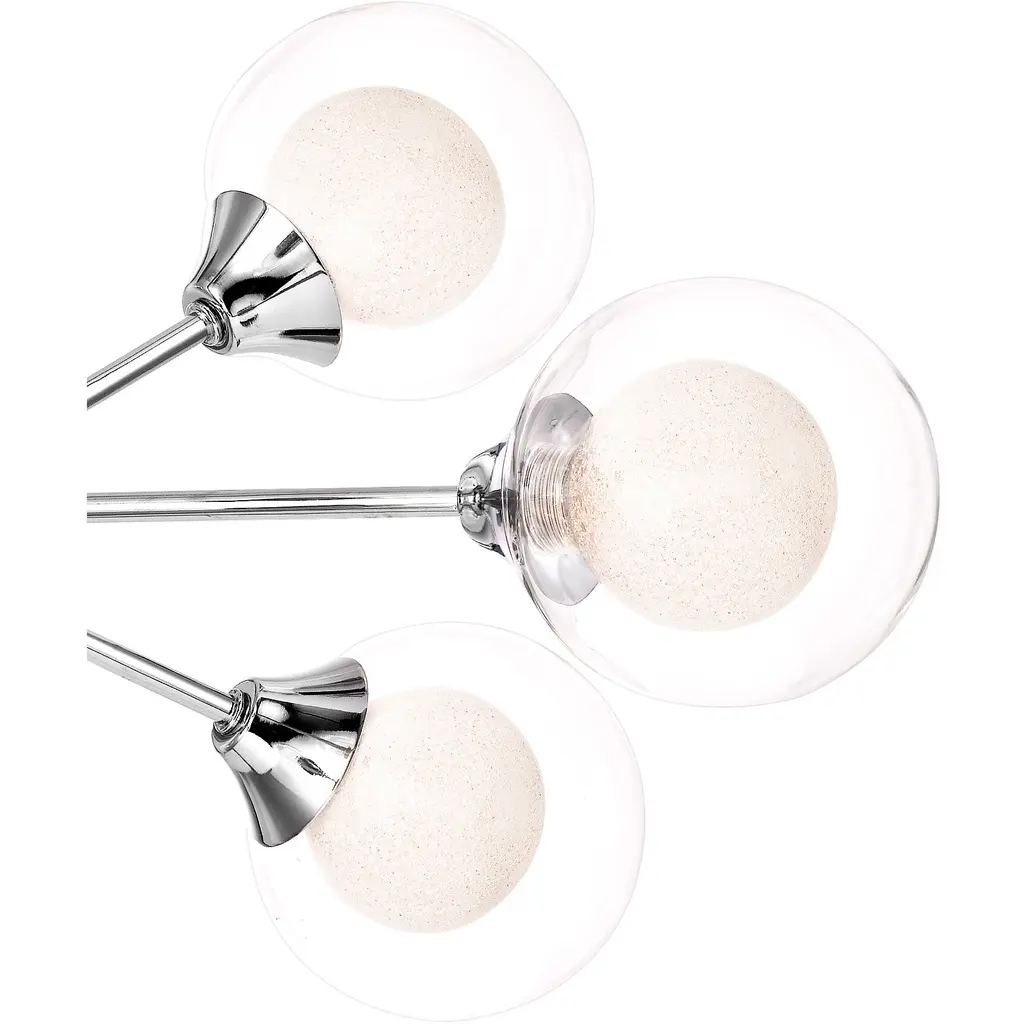 Find yourself mesmerized by the vintage beauty of the Spellbound, a stunning member of Platinum by Quoizel. Inspired by the sputnik designs of decades past, this collection is truly retro reimagined. Spheres of shimmering ice glass are encased in outer shades of clear glass, resulting in a glittering display of light. The polished chrome arms and sockets adds a contemporary edge to finish the look.