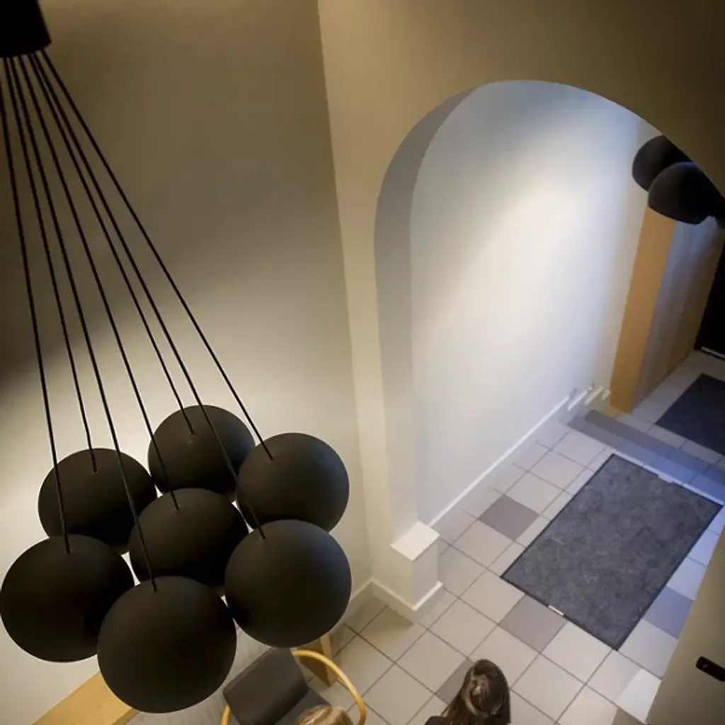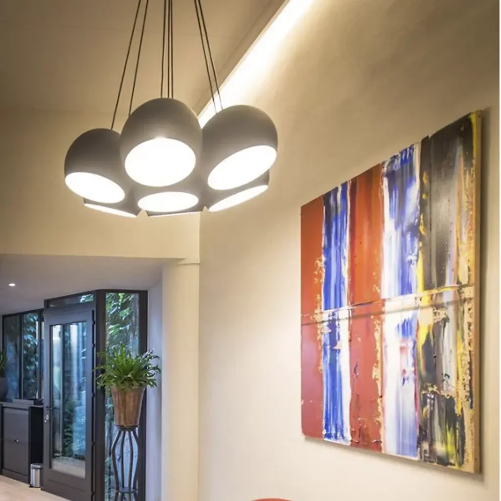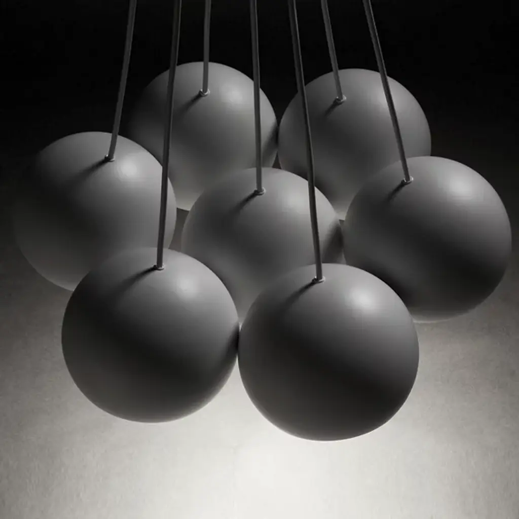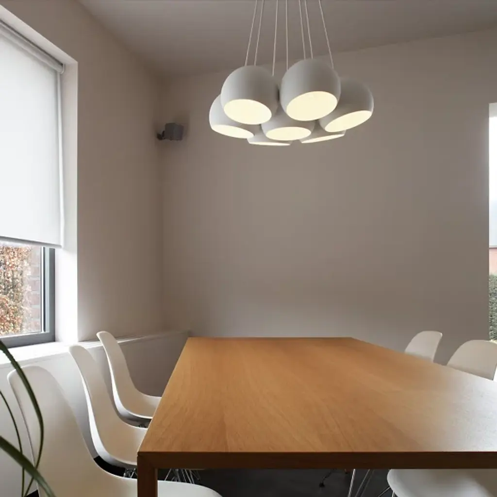 Big, bold, and brilliant. The Sphere Big Multi-Light Pendant by tossB offers a refreshing take on a familiar modern pendant style. A cylindrical canopy drops a series of cords from a shared starting point to suspend open sphere shades below. The metal shades hang freely in a cluster, presenting a cloud-like form that brings softness and smoothness to the room. White interiors reflect their warm light brilliantly, brightening the area and adding elegance to décor.
