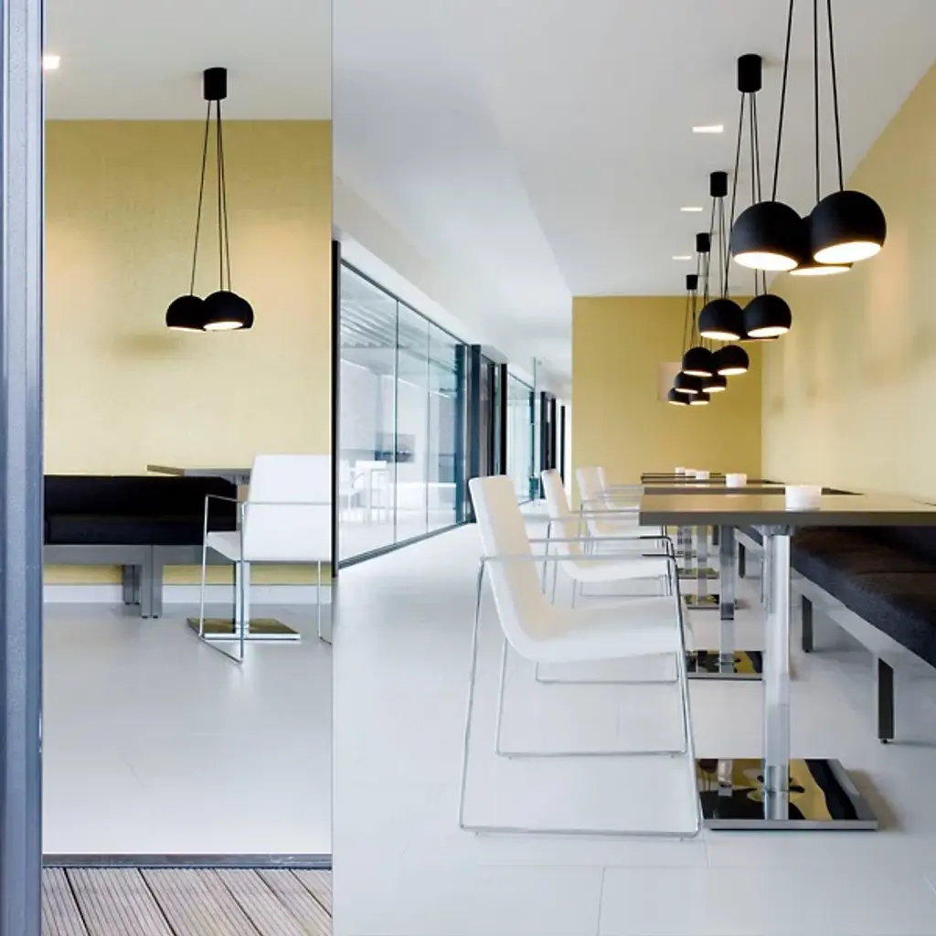 Big, bold, and brilliant. The Sphere Big Multi-Light Pendant by tossB offers a refreshing take on a familiar modern pendant style. A cylindrical canopy drops a series of cords from a shared starting point to suspend open sphere shades below. The metal shades hang freely in a cluster, presenting a cloud-like form that brings softness and smoothness to the room. White interiors reflect their warm light brilliantly, brightening the area and adding elegance to décor.
