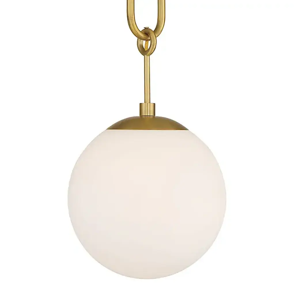 A contemporary interpretation of Parisian bistro chic, this globe-shape pendant is equally at home above a dining table, in an entryway, or in a bathroom. The white glass ensures a warm, flattering glow.