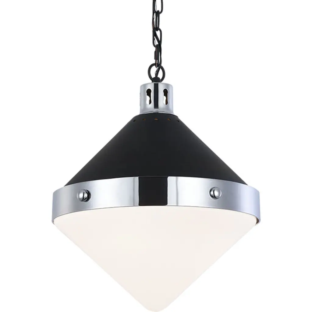 A fusion design that combines medieval style with modern elements. Sphericon is available in Matte Black with Aged Gold Brass or Matte Black with Chrome. Both colour options are complete with a clear glass shade or an opal glass shade. LIGHTBULBS NOT INC