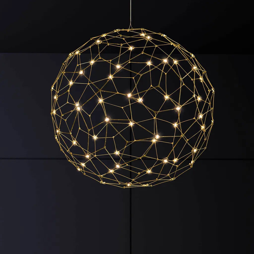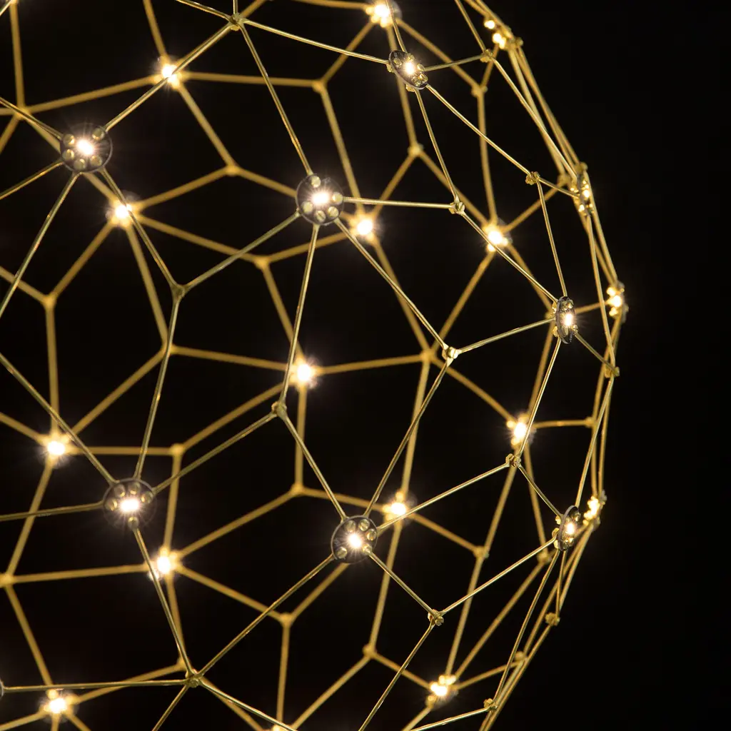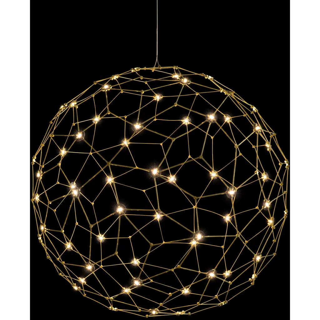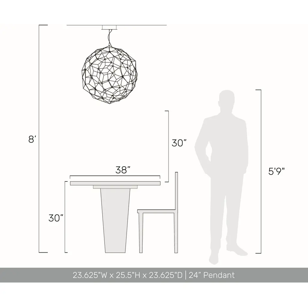 Bring modern glam elegance into your home with the Golden Lighting Spheris Integrated LED 24in Pendant. Featuring stunning integrated LED technology and a natural brass frame, it creates a welcoming atmosphere. The spherical design features dazzling LED lights, providing a luxurious and dramatic display that transforms any space. Crafted from genuine solid brass, the timeless natural brass finish celebrates the authentic beauty and warmth of the material, enhancing your décor over time. Perfect for a variety of settings, this pendant is dry location rated, making it ideal for bedrooms, living rooms, and hallways. Easily installable on sloped ceilings, it features an adjustable height ranging from 28.5" to 147.75". With overall dimensions of 23.63"W x 25.5"H x 23.63"D, this pendant utilizes integrated LED technology, delivering 1944 rated lumens and a cozy 3000K warm glow. Elevate your space with the sophisticated quality and timeless charm of the Golden Lighting Spheris Pendant.