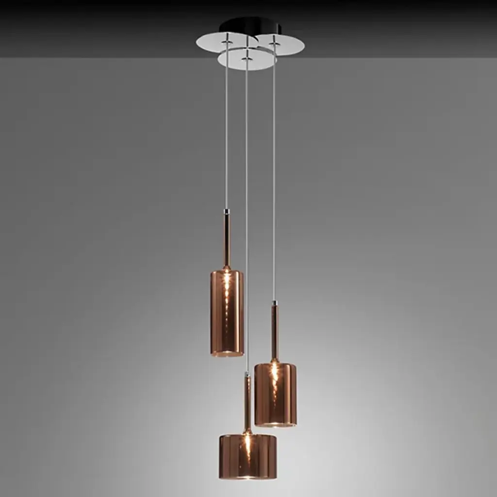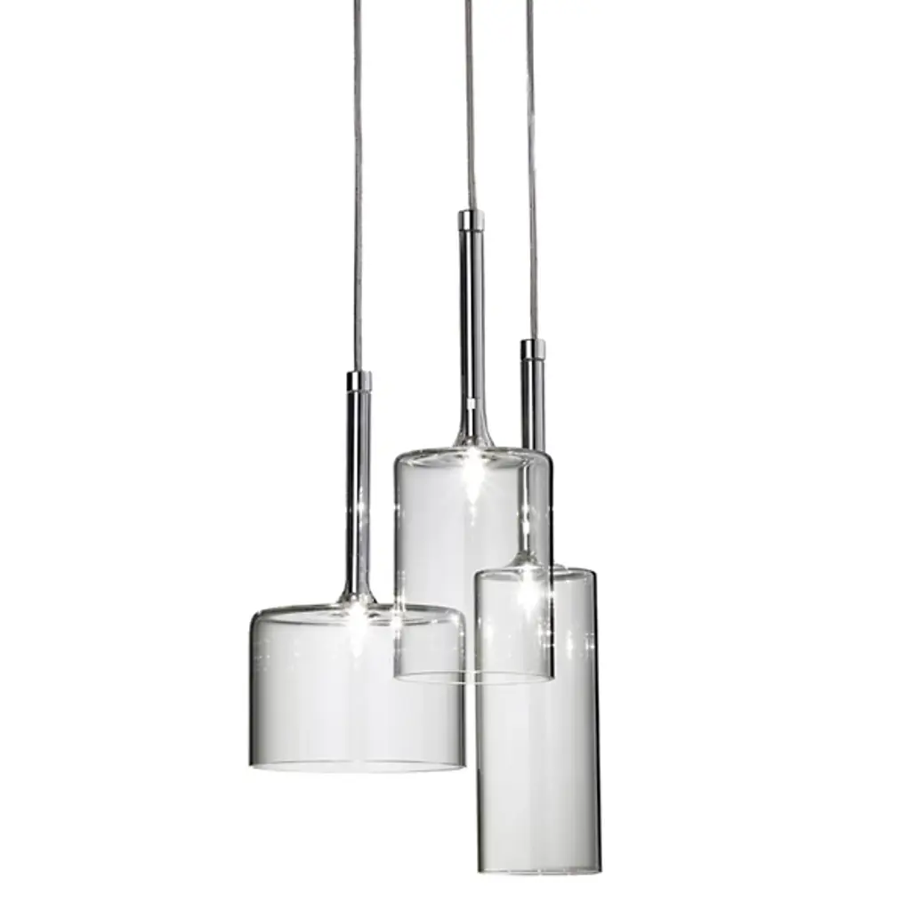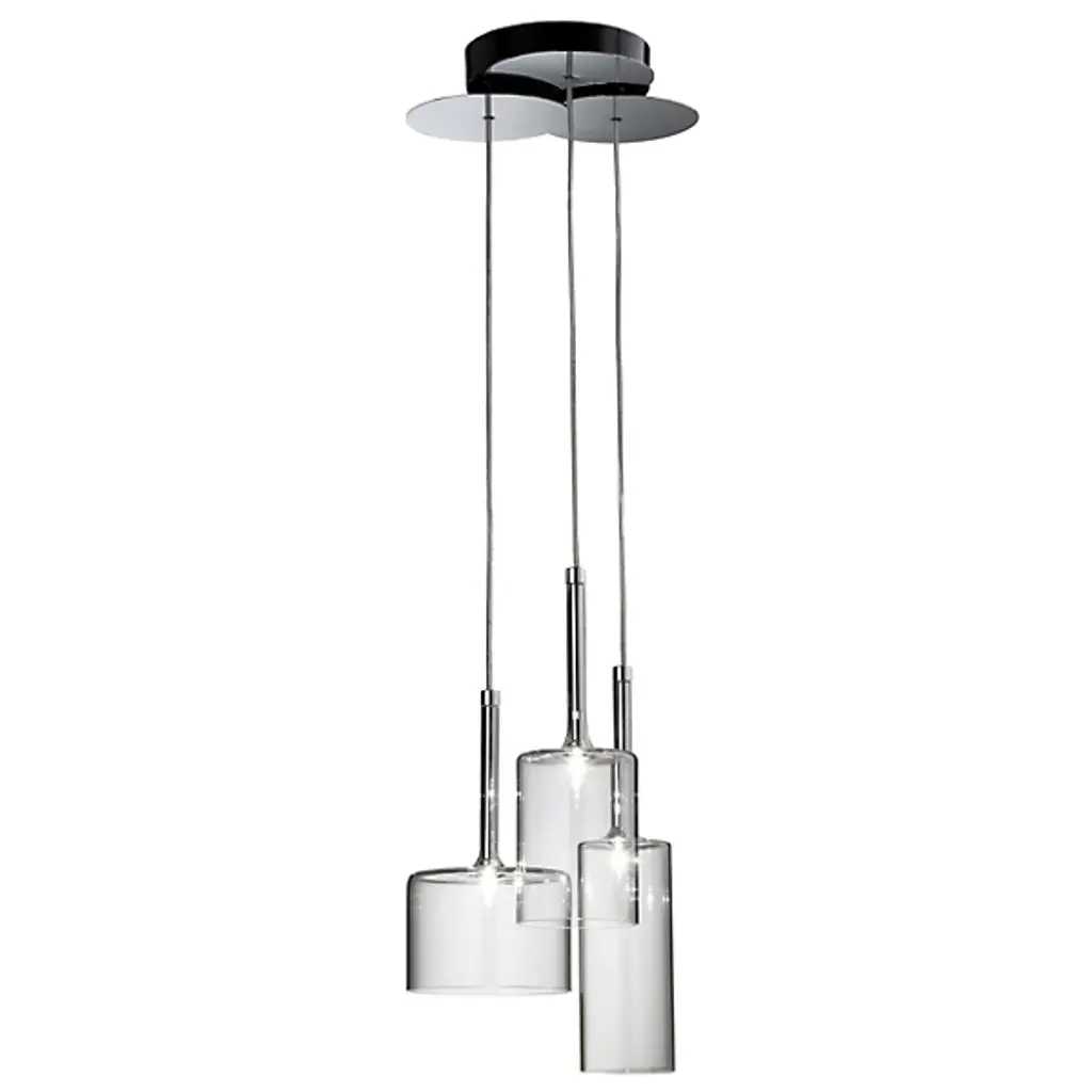 Intricate lighting nuances are achieved with the Axolight Spillray 3-Light Pendant. Small glints of light play and gleam through layered Pyrex glass goblets thanks to their varying heights. A space is instantly defined by the fixture's unique characteristics. Designed by Manuel Vivian.