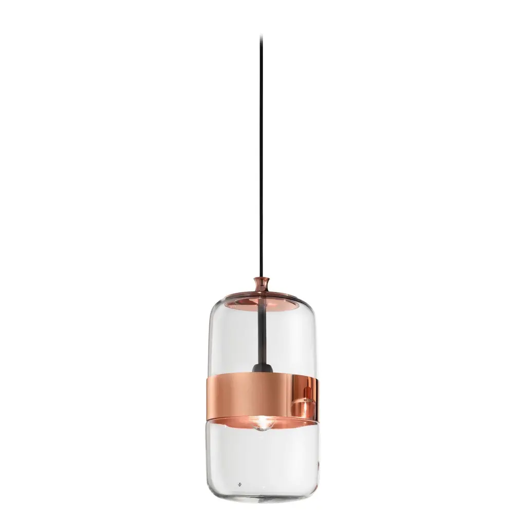 The Axolight Spillray P Mini Pendant was designed by Manuel Vivian with a clean form pouring forth a sparkling wash of light. This contemporary cylinder is made out of Pyrex glass, available in four colors. Create a custom arrangement with other single Spillray pendants, or choose from one of the pre-configured multi-light pendants.