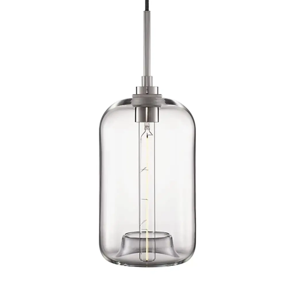 The Axolight Spillray P Mini Pendant was designed by Manuel Vivian with a clean form pouring forth a sparkling wash of light. This contemporary cylinder is made out of Pyrex glass, available in four colors. Create a custom arrangement with other single Spillray pendants, or choose from one of the pre-configured multi-light pendants.