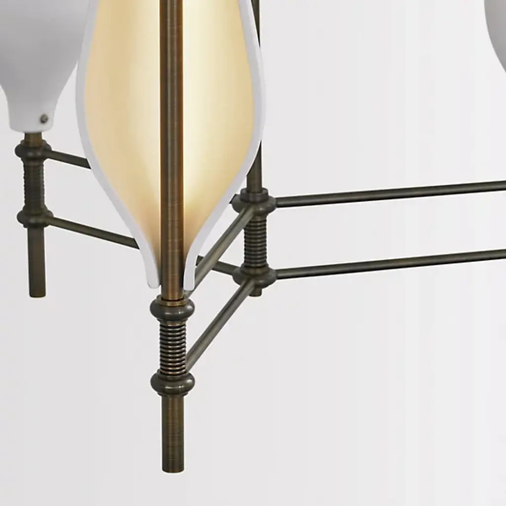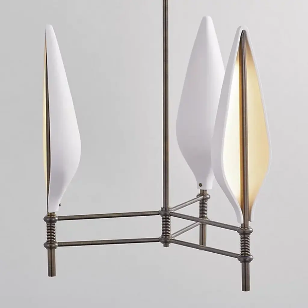 Inspired by a church’s sky-pointing roof and a delicate leaf. The Spire LED Pendant from Boyd Lighting keeps the eyes tilted up like its architectural inspiration. Modern and traditional elements combine in this stylish piece. It’s a true focal point, floating above with a slender metal framework. Turned brass rods shoot up like the central vein of a beautiful leaf. Soft to the touch, cast porcelain shades cup the rods and LEDs in an elegant spire shape. The LEDs direct their light at the inner walls of the porcelain to achieve an attractive golden glaze. The pendant’s indirect light creates a spacious, relaxing ambiance.