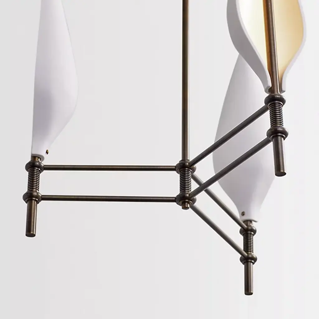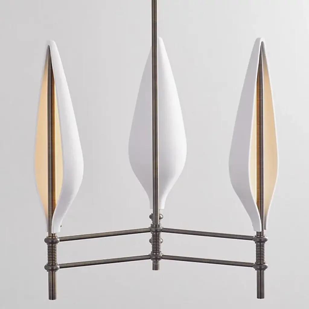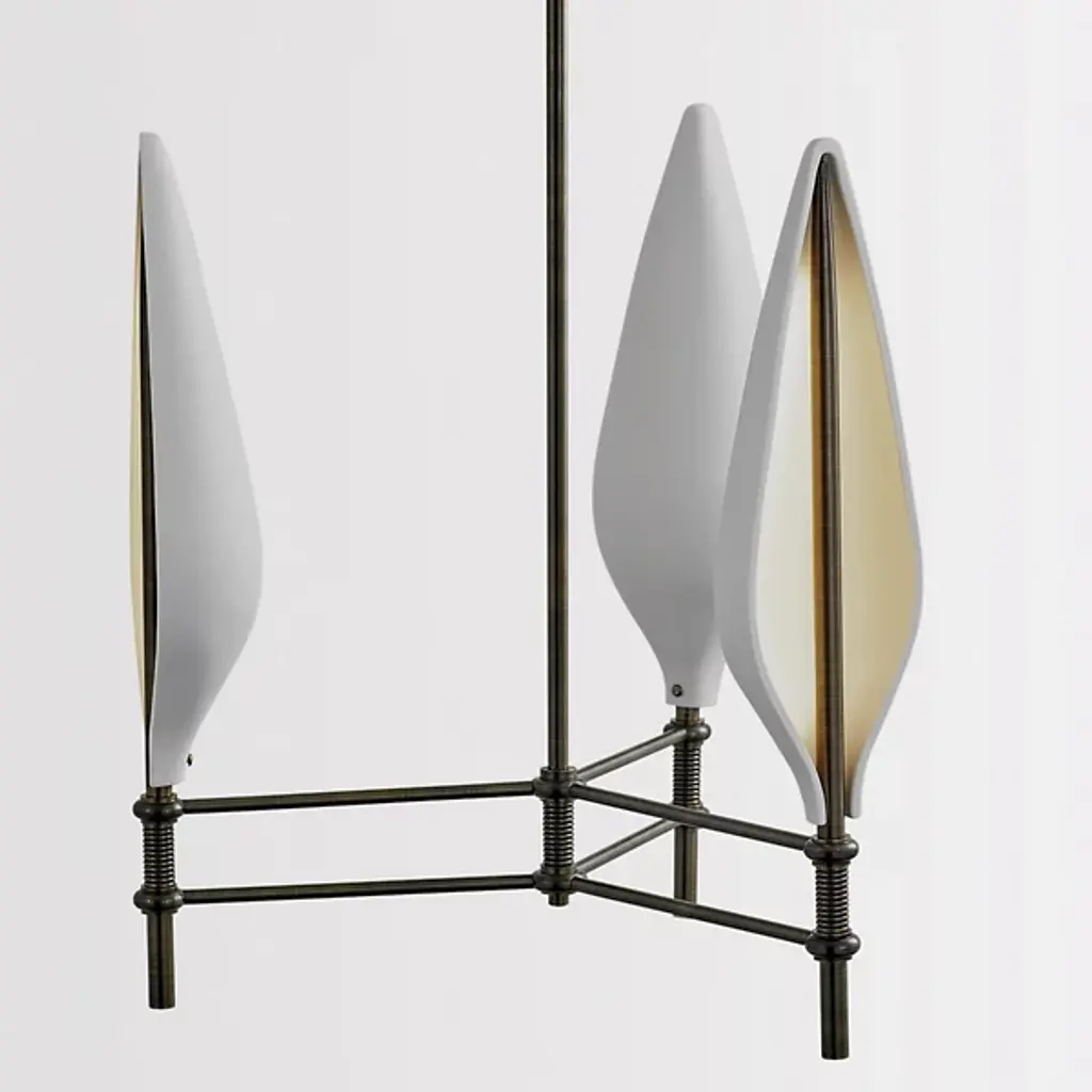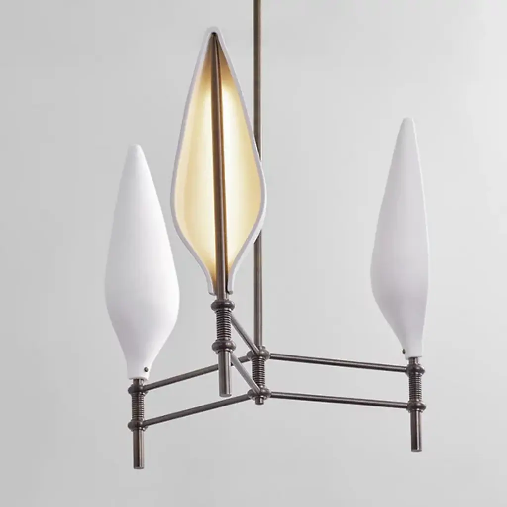Inspired by a church’s sky-pointing roof and a delicate leaf. The Spire LED Pendant from Boyd Lighting keeps the eyes tilted up like its architectural inspiration. Modern and traditional elements combine in this stylish piece. It’s a true focal point, floating above with a slender metal framework. Turned brass rods shoot up like the central vein of a beautiful leaf. Soft to the touch, cast porcelain shades cup the rods and LEDs in an elegant spire shape. The LEDs direct their light at the inner walls of the porcelain to achieve an attractive golden glaze. The pendant’s indirect light creates a spacious, relaxing ambiance.