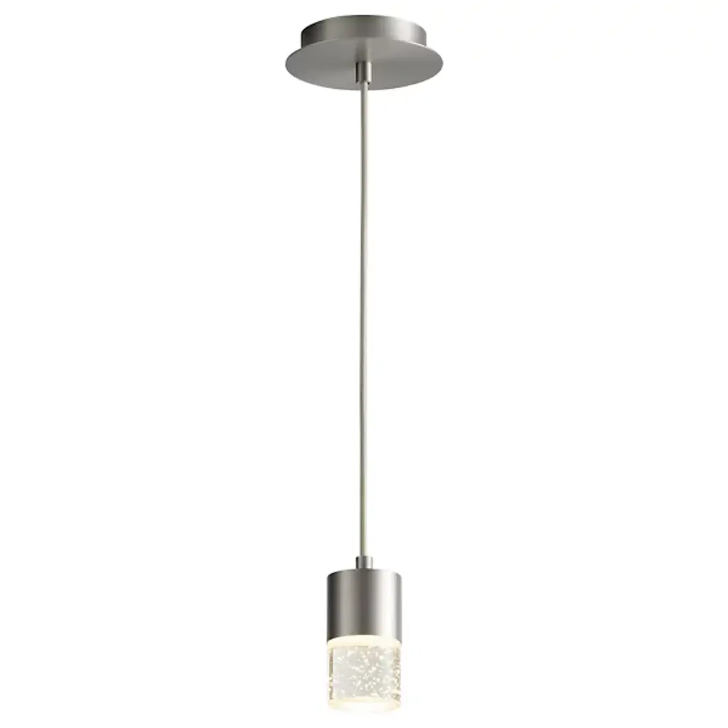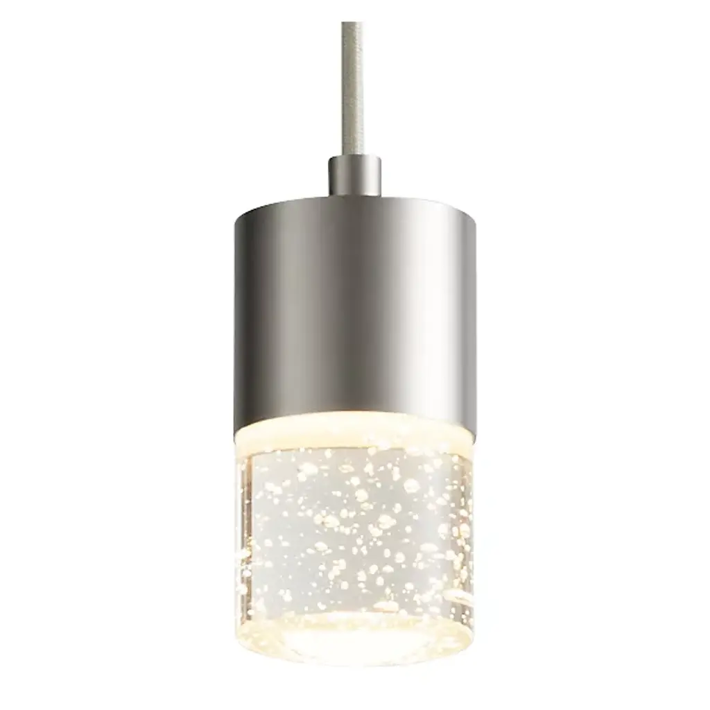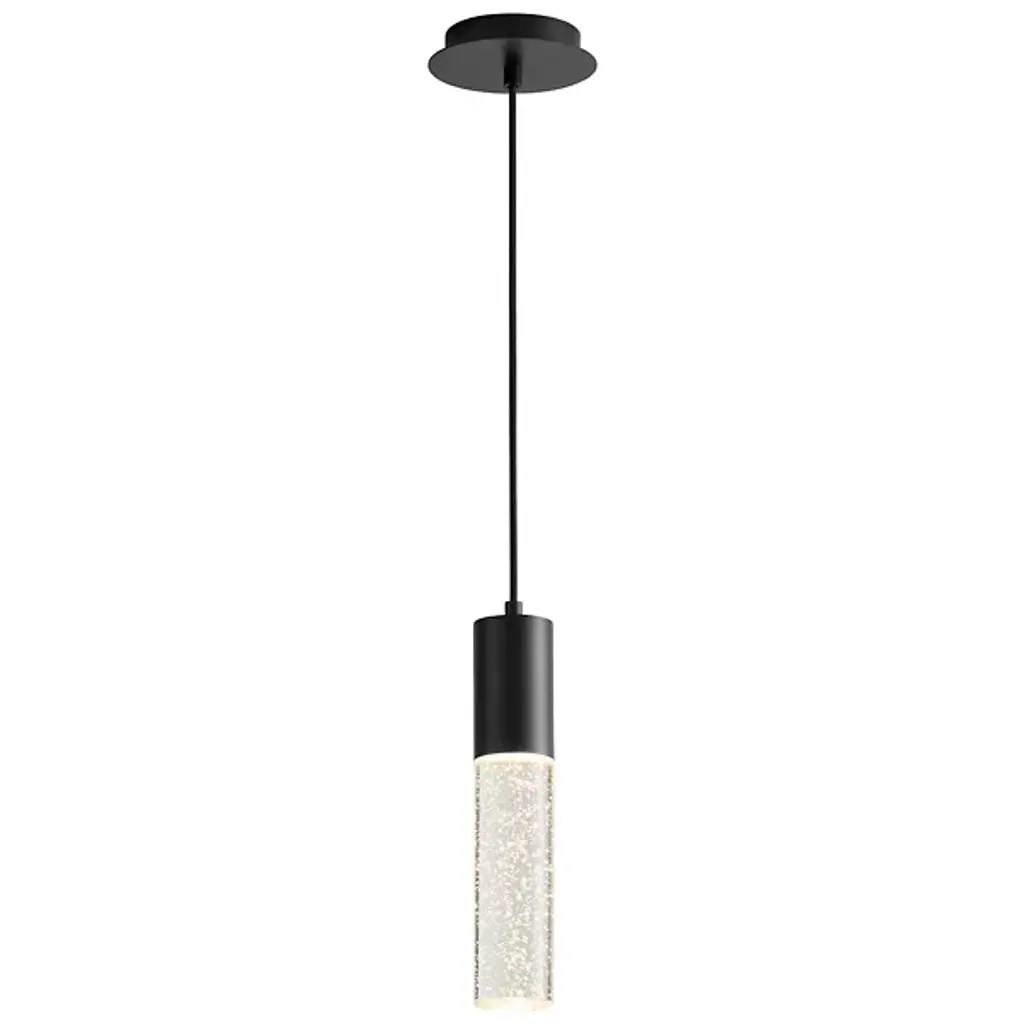 Bring attention to the room with the warm and even layer of light emanating from the Spirit LED Mini Pendant from Oxygen Lighting. A simple yet expressive piece, this modern delight unites contrasting metal and glass materials into a beautiful display. Hanging from a single thin downrod is the cylindrical pendant body neatly split into two halves. The lower glass half contains a tasteful bubble texture that comes to life as the light from the integrated LED spreads out into the space.