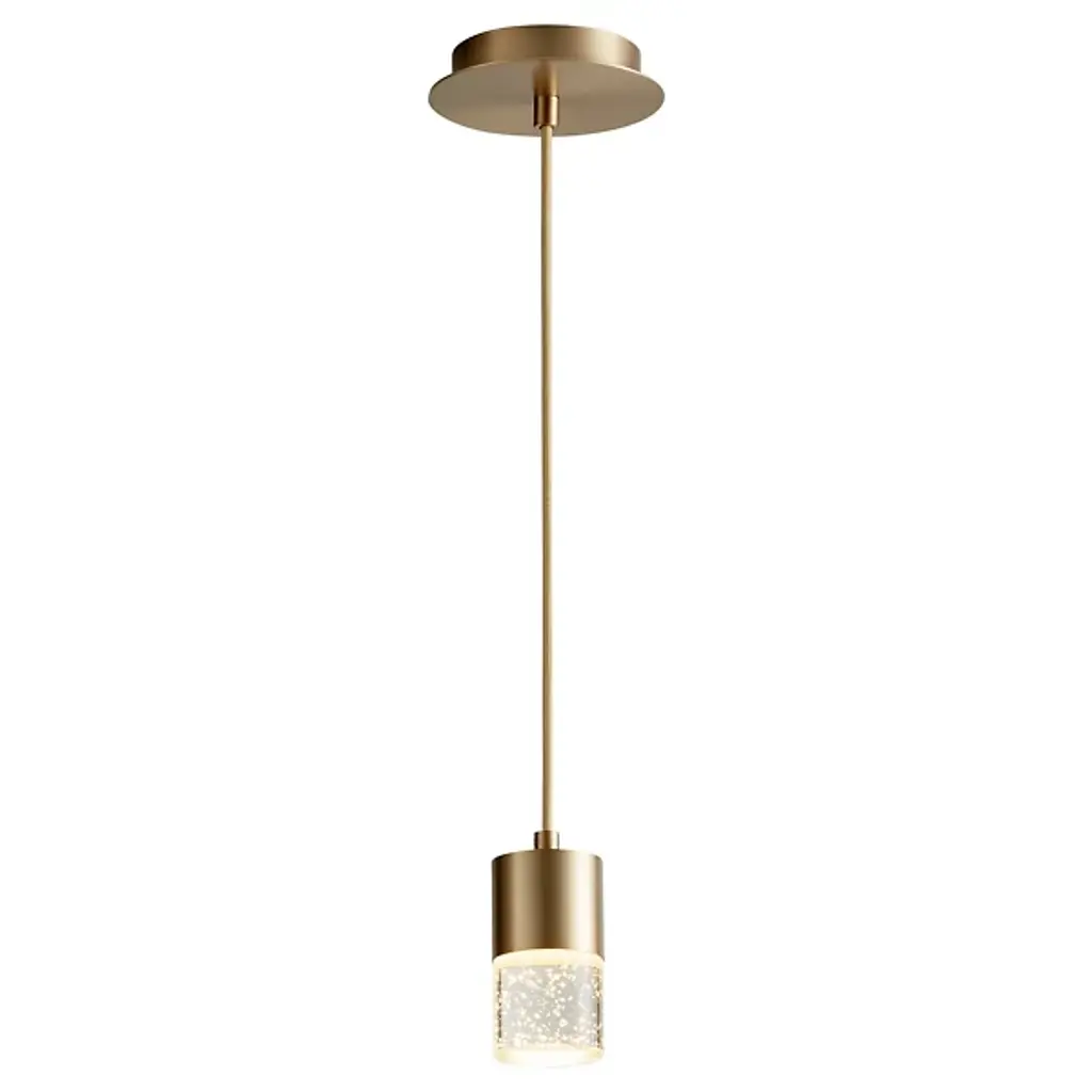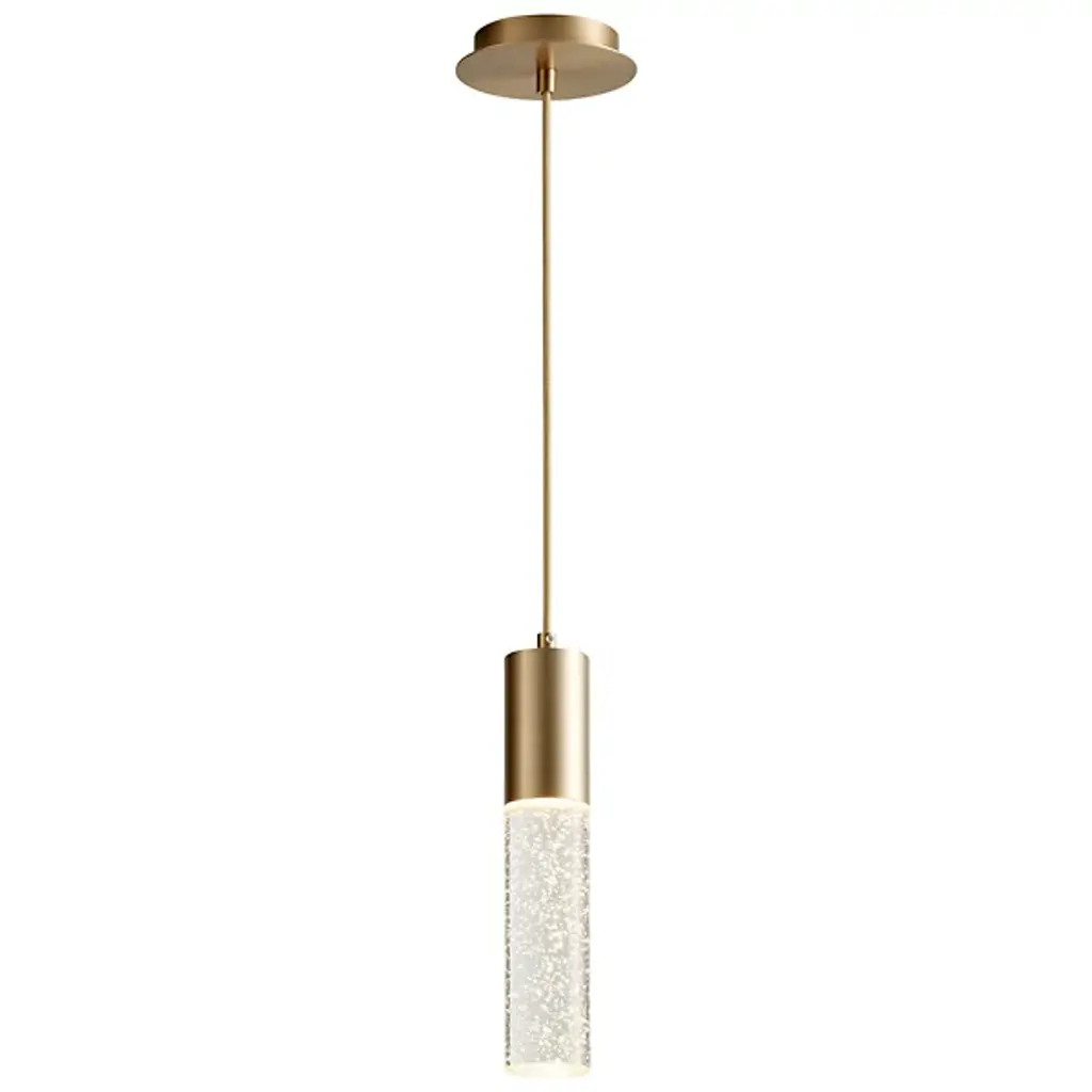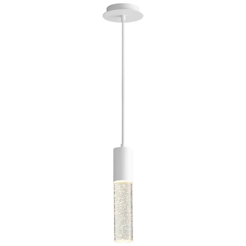 Bring attention to the room with the warm and even layer of light emanating from the Spirit LED Mini Pendant from Oxygen Lighting. A simple yet expressive piece, this modern delight unites contrasting metal and glass materials into a beautiful display. Hanging from a single thin downrod is the cylindrical pendant body neatly split into two halves. The lower glass half contains a tasteful bubble texture that comes to life as the light from the integrated LED spreads out into the space.