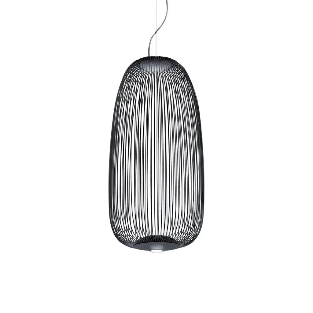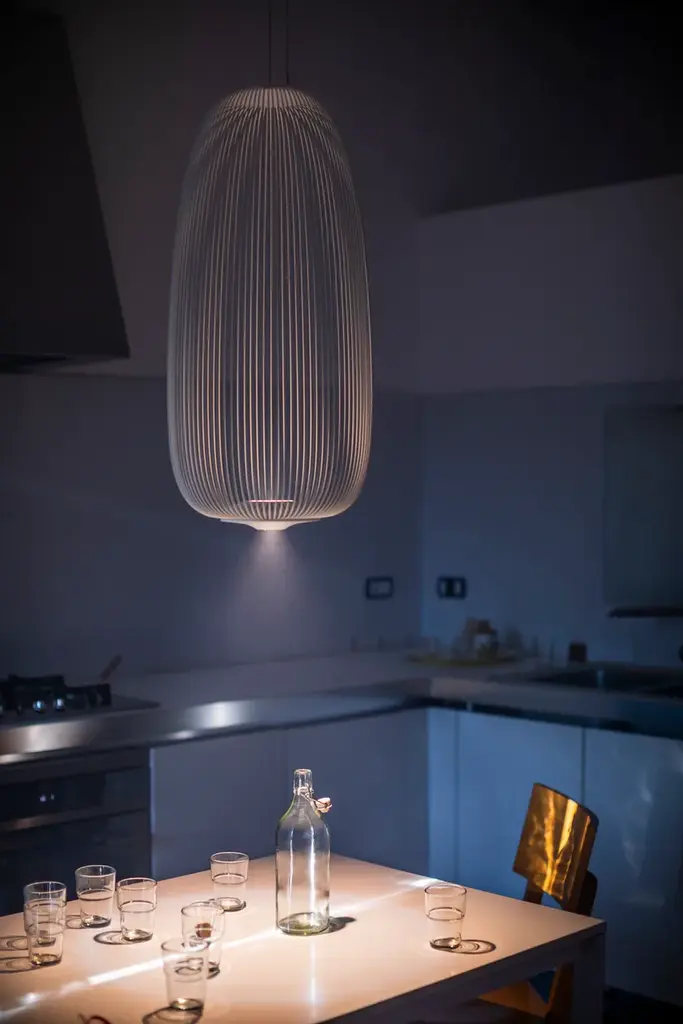 Spokes 1 is a pendant lamp made of varnished steel and aluminium.LIGHT SOURCESpokes 1 LED / Spokes 1 LED MyLightLED included 30W (25+5)2700 K 3220 lm CRI>90Dimmable On-Off/Push/DALI / Dimmable via Bluetooth with Casambi AppIP 20Energy efficiency ELight volumes that contain light and at the same time allow it to flow into space. The double LED source lights the surface below perfectly, while creating magical games of light and shadow on the walls and ceiling. A truly versatile model, thanks to the range of forms, sizes and colours.