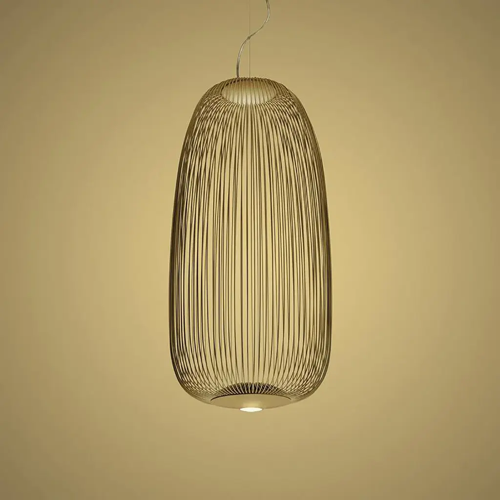 A Foscarini Spokes 1 Suspension Light was inspired by images of antique Asian lanterns and traditional aviaries, designs which makes use of vertical metal rods. The spokes of bicycle wheels gave this modern pendant light its name. Spokes is a lightweight modern suspension lamp composed of vertical steel rods that form an elegant oval diffuser. The diffuser delicately disperses light onto the surface below and onto the surrounding walls, creating a magical interplay of reflection and shadow. The Foscarini Spokes 1 Suspension Light is a modern pendant light that suits both residential and commercial interiors equally well. Features
