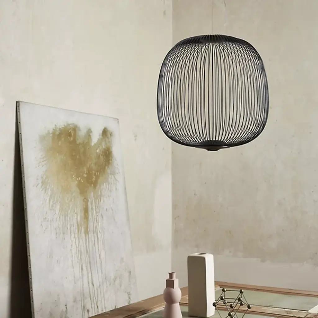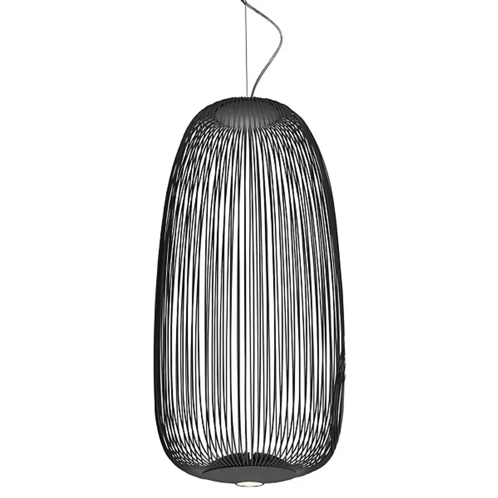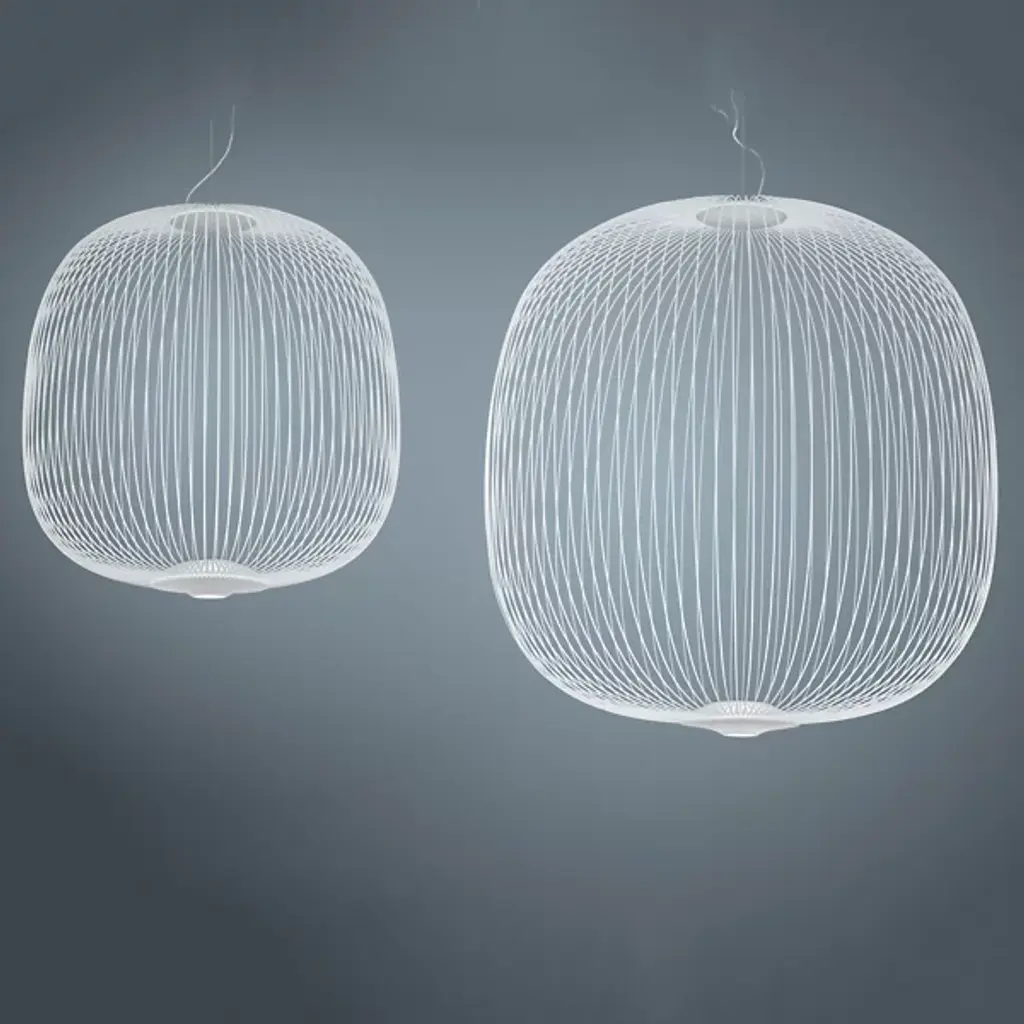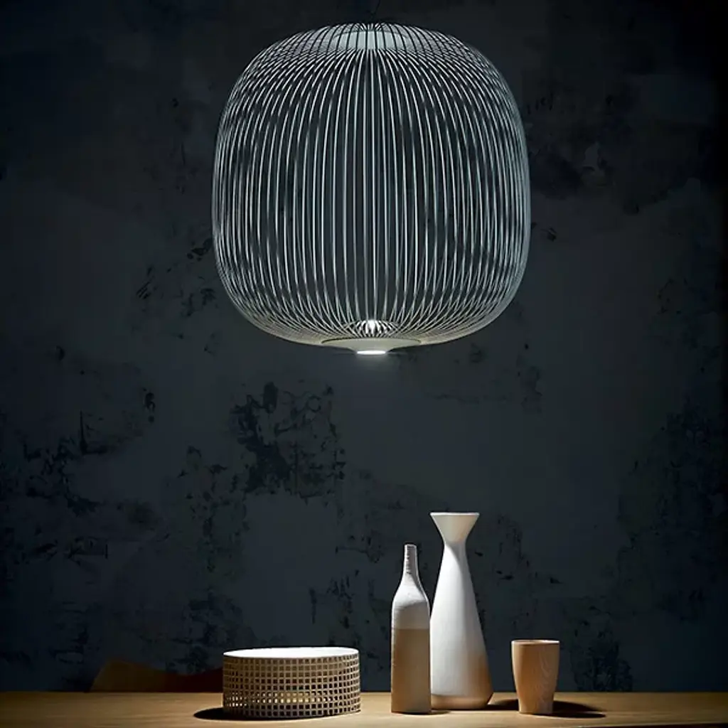 Lightweight with soft shapes. The Spokes 2 LED Pendant from Foscarini was designed by Studio Garcia Cumini and was inspired by a combination of old-fashioned oriental lamps and the wheels of a bicycle, where it gets its name from. The spokes of the product are made out of varnished steel and aluminum rods, and when the LED light shines out through them, it creates a beautiful mix of light and shadow.