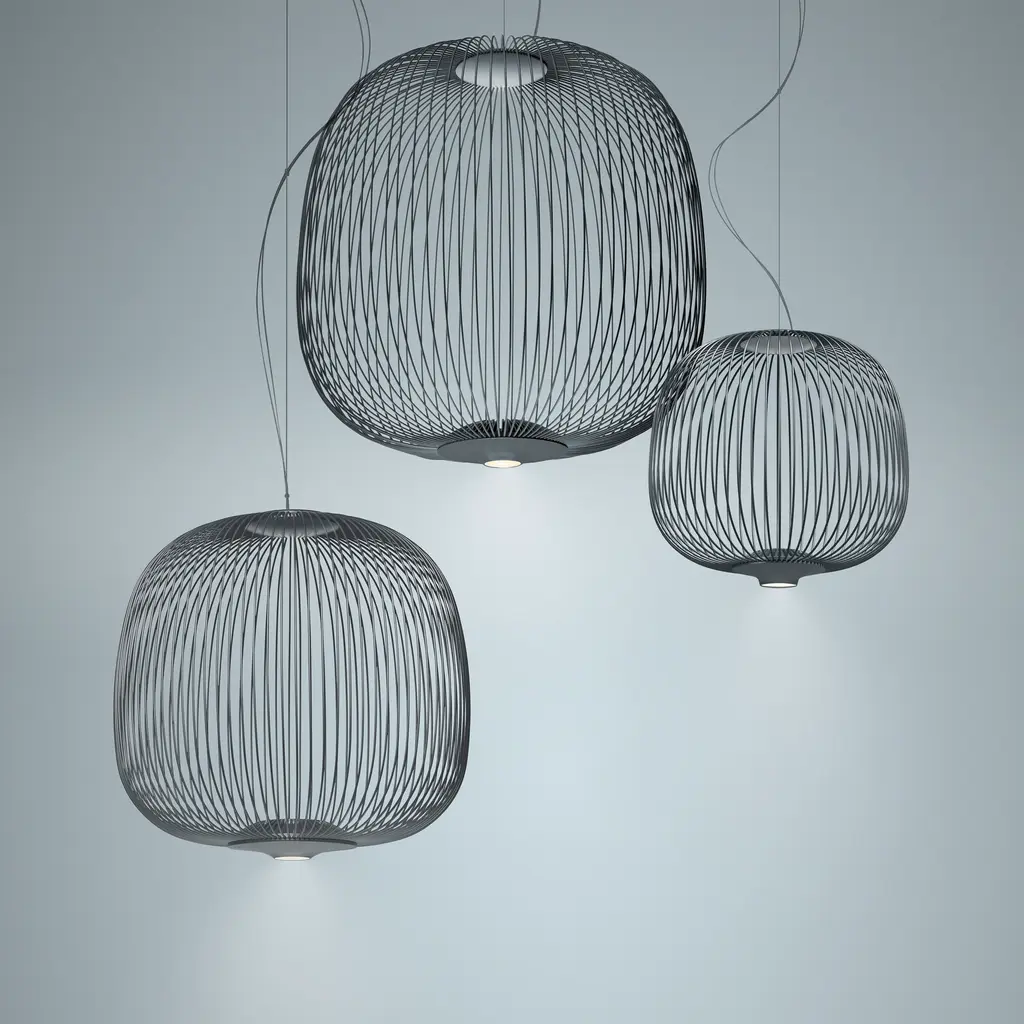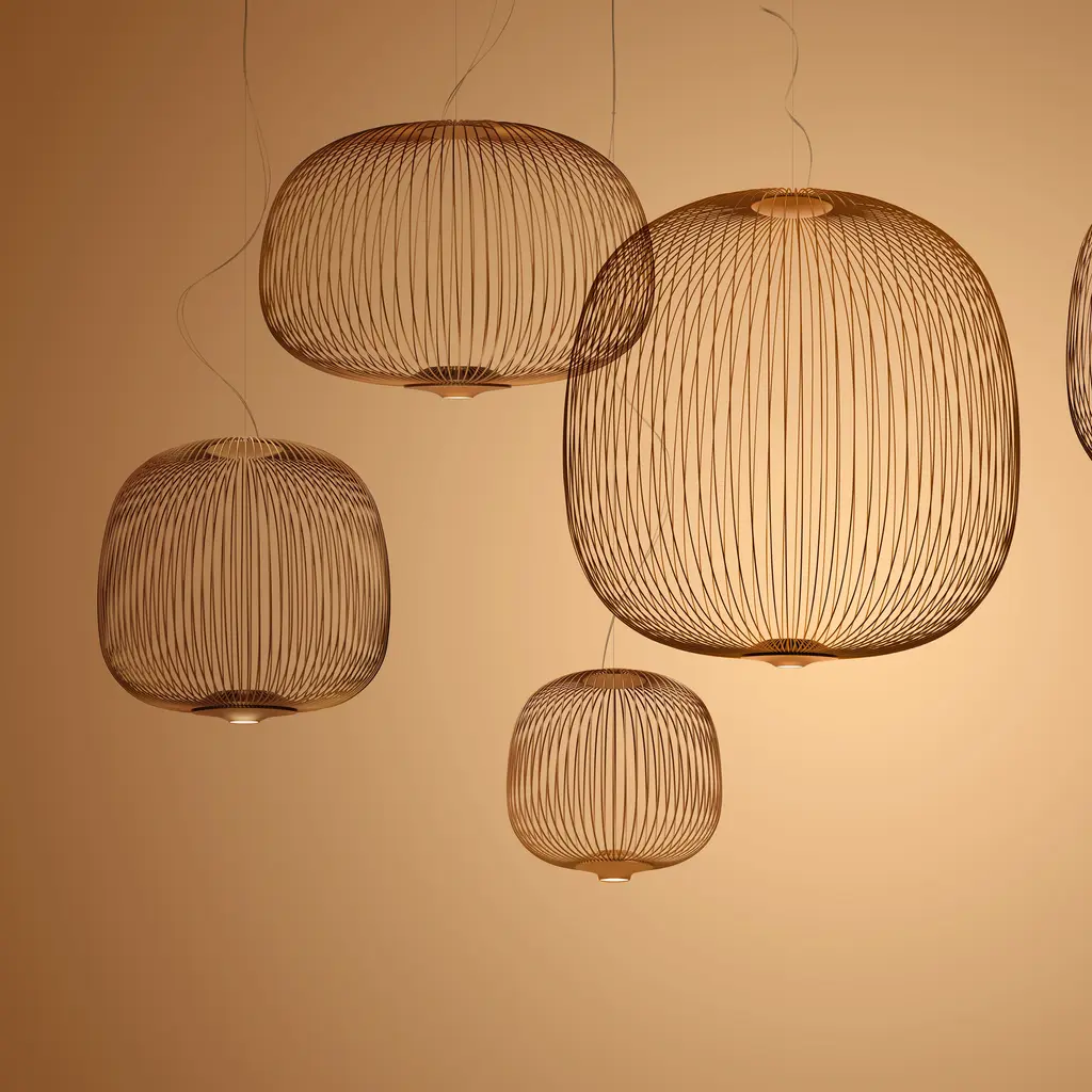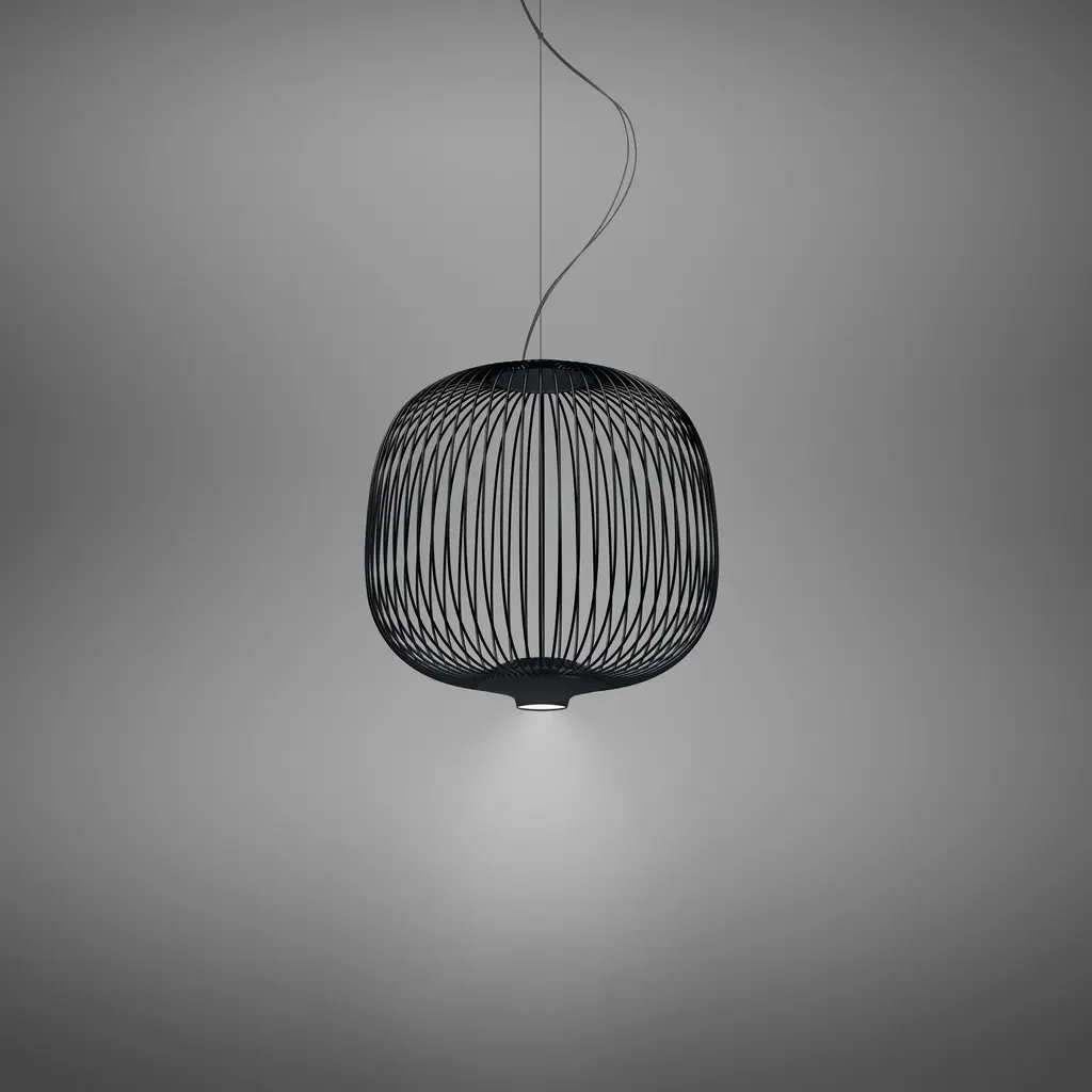 The already numerous Spokes family – which includes Spokes 1 with its oblong form, Spokes 2 which resembles a lantern, and Spokes 3 with its simple, compact form – has now been enhanced by a new size for version 2. The new Spokes 2 small version lends itself to use in rows over a counter or a reception desk, for example, or as a soloist above individual tables. A single model can be used for the configuration, or a combination with other lamps from the same family. Features